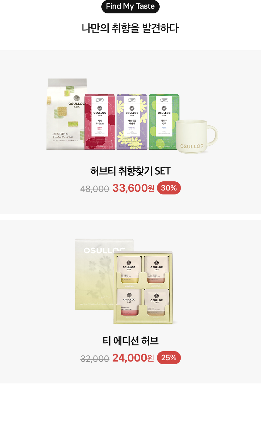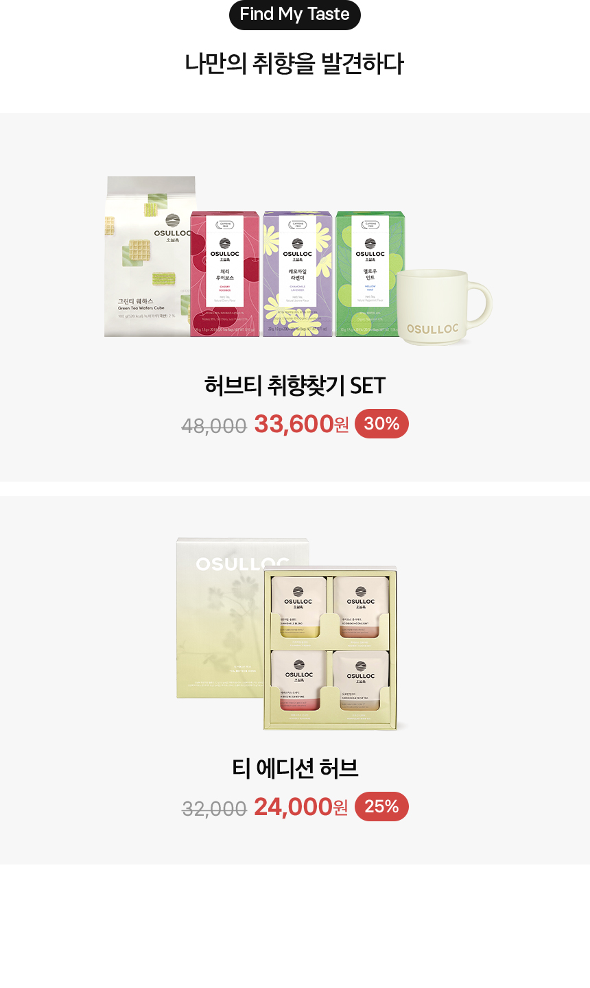 허브티 취향찾기 SET 자세히 보기티 에디션 허브 : 정상가 32000원, 오후 5시 특별가 25% 할인 24000원