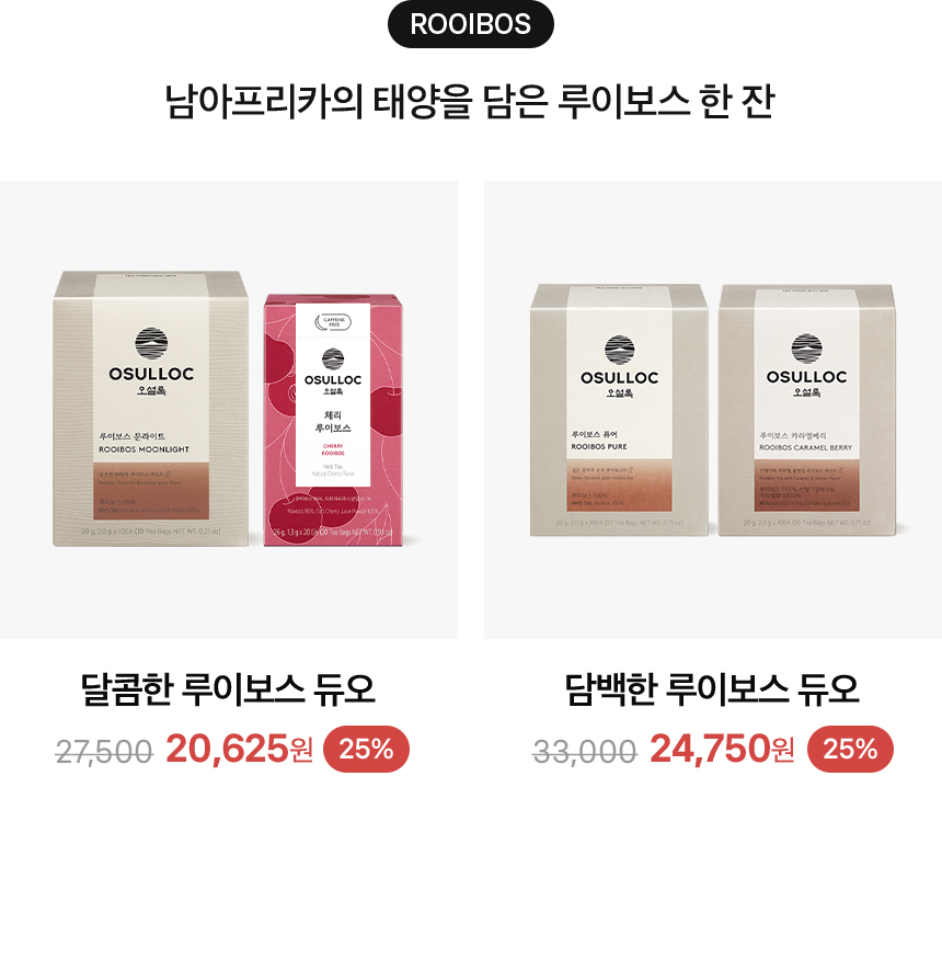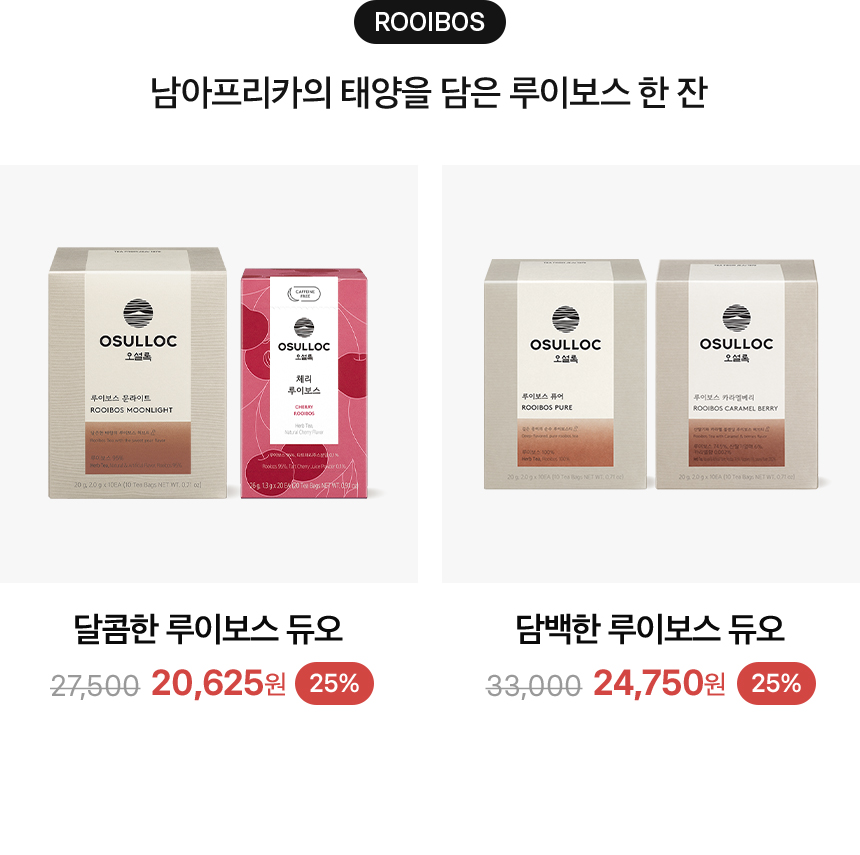 달콤한 루이보스 듀오 자세히 보기담백한 루이보스 듀오 : 정상가 33000원, 오후 5시 특별가 25% 할인 24750원