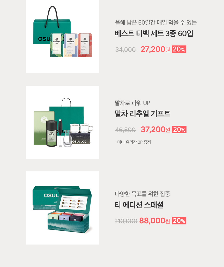 베스트 티백 세트 3종 60입 보러가기말차로 파워 UP