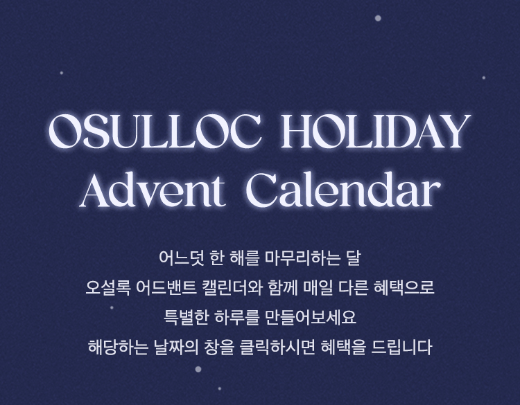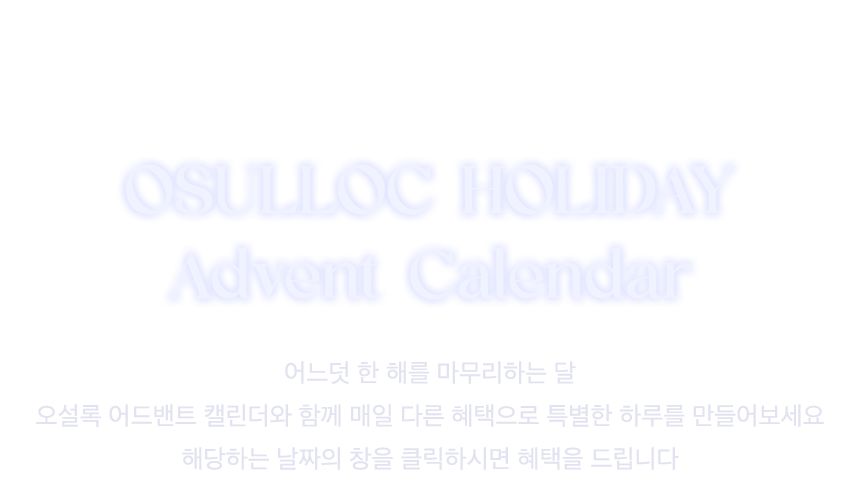 어느덧 한 해를 마무리하는 달, 오설록 어드벤트 캘린더와 함께 매일매일 특별한 하루를 만들어보세요.