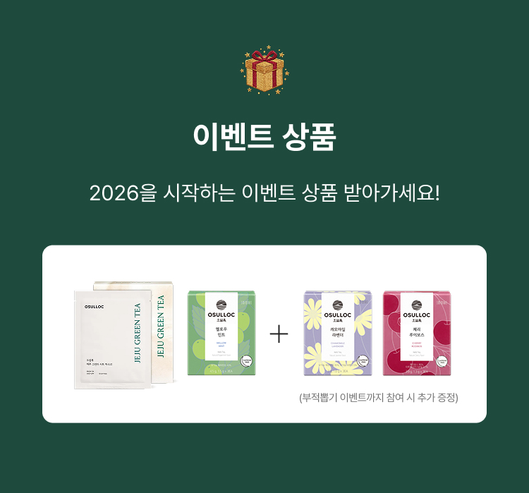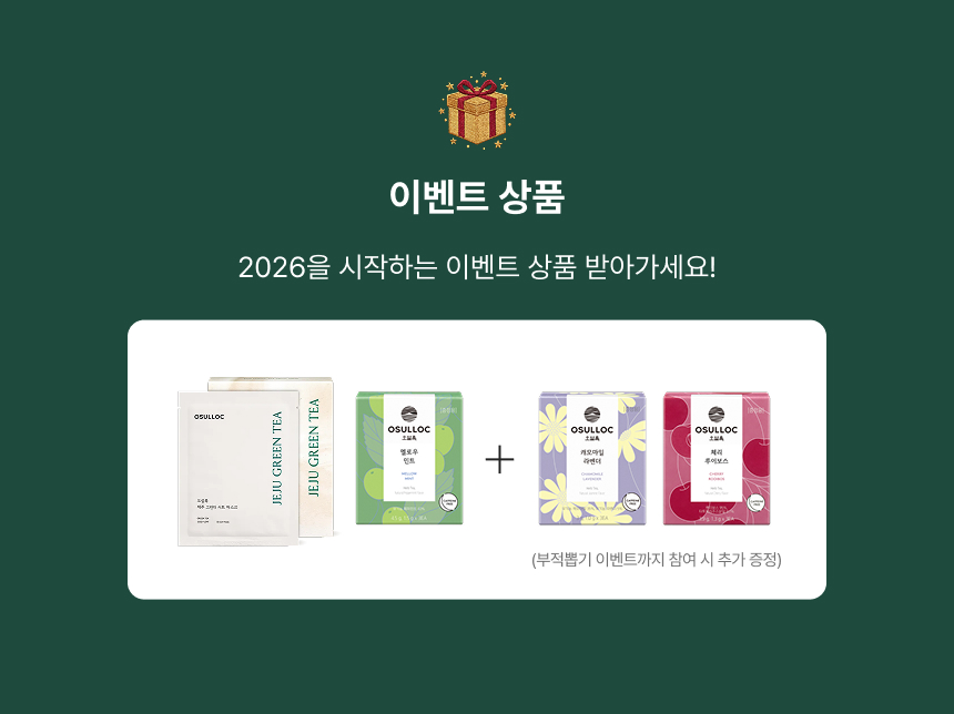 제주 그린티 마스크팩과 멜로우 민트 3입, 부적뽑기 이벤트까지 참여 시 캐모마일 라벤더 3입, 체리 루이보스 3입 추가 증정