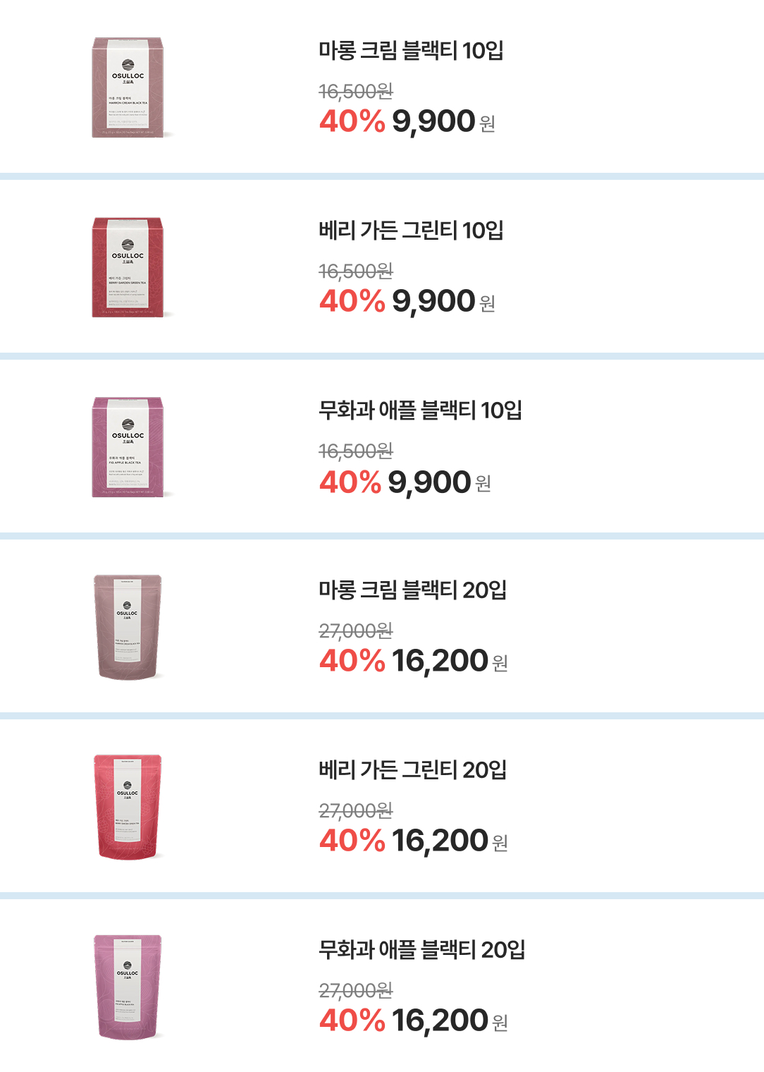 티 베리에이션 오 6종 36입 보러가기(베스트) 프리미엄 티 컬렉션 10종 40입