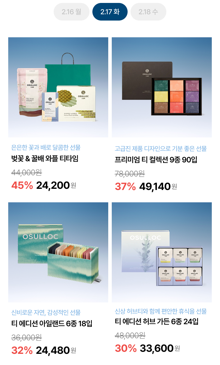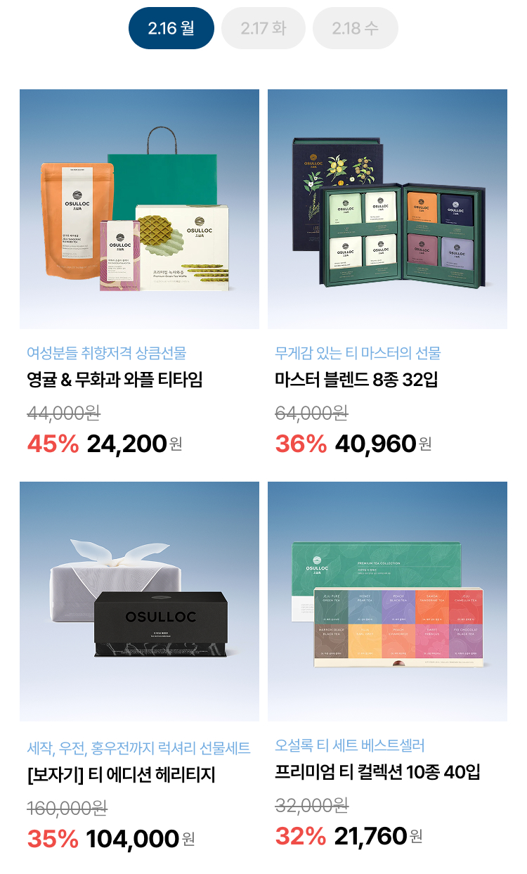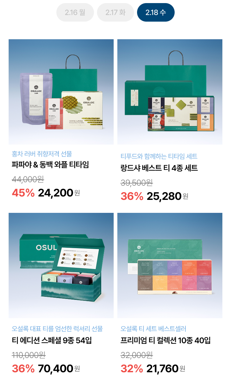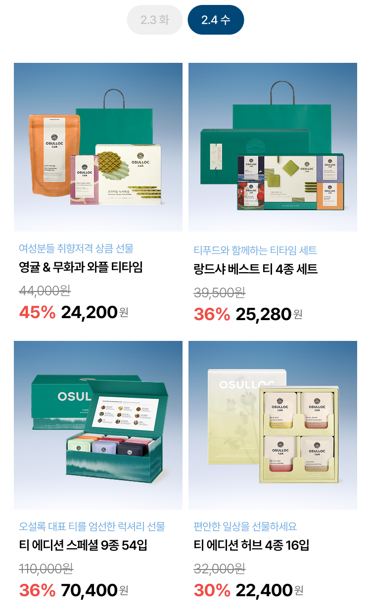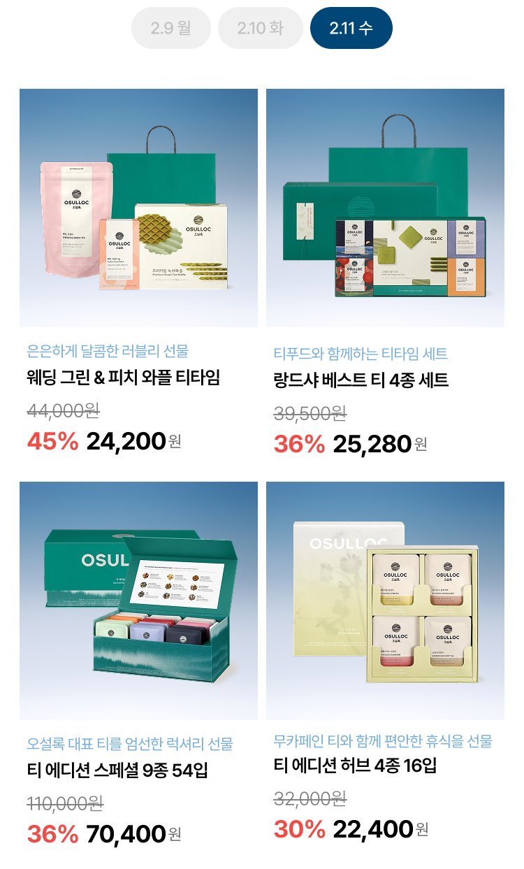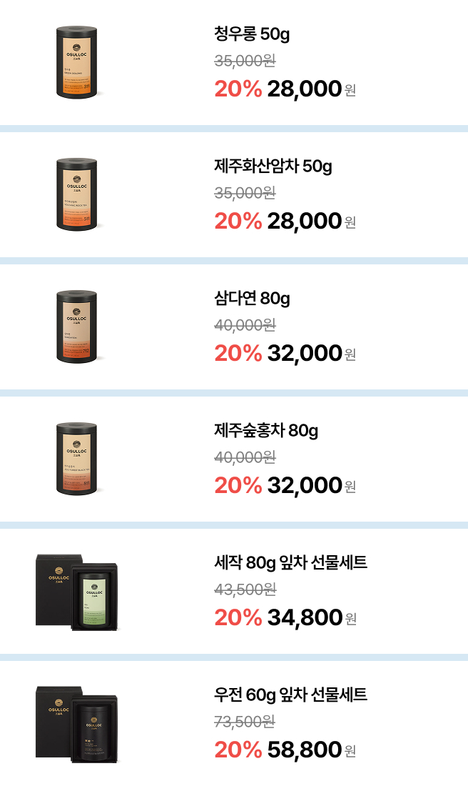 월, 화, 수 특가로 오설록 베스트를 부담 없이 만나보세요