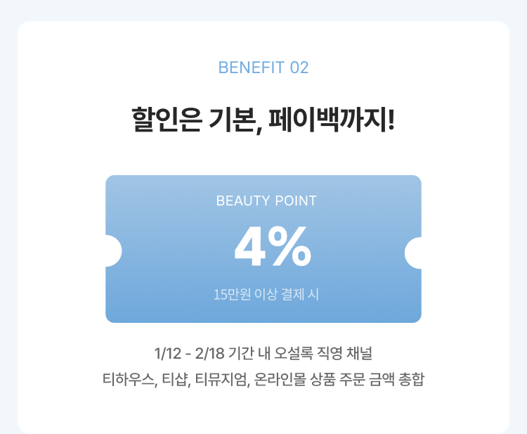 뷰티포인트 4% 페이백 (15만원 이상 결제 시)