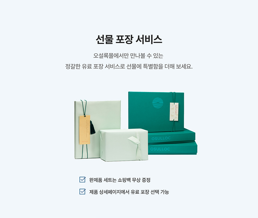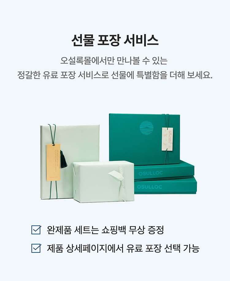 오설록몰에서만 만나볼 수 있는 정갈한 유료 포장 서비스로 선물에 특별함을 더해 보세요.