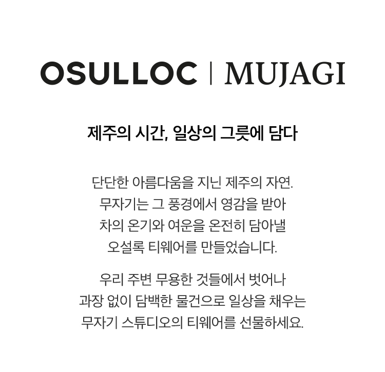 무자기는 그 풍경에서 영감을 받아 차의 온기와 여운을 온전히 담아낼 오설록 티웨어를 만들었습니다.