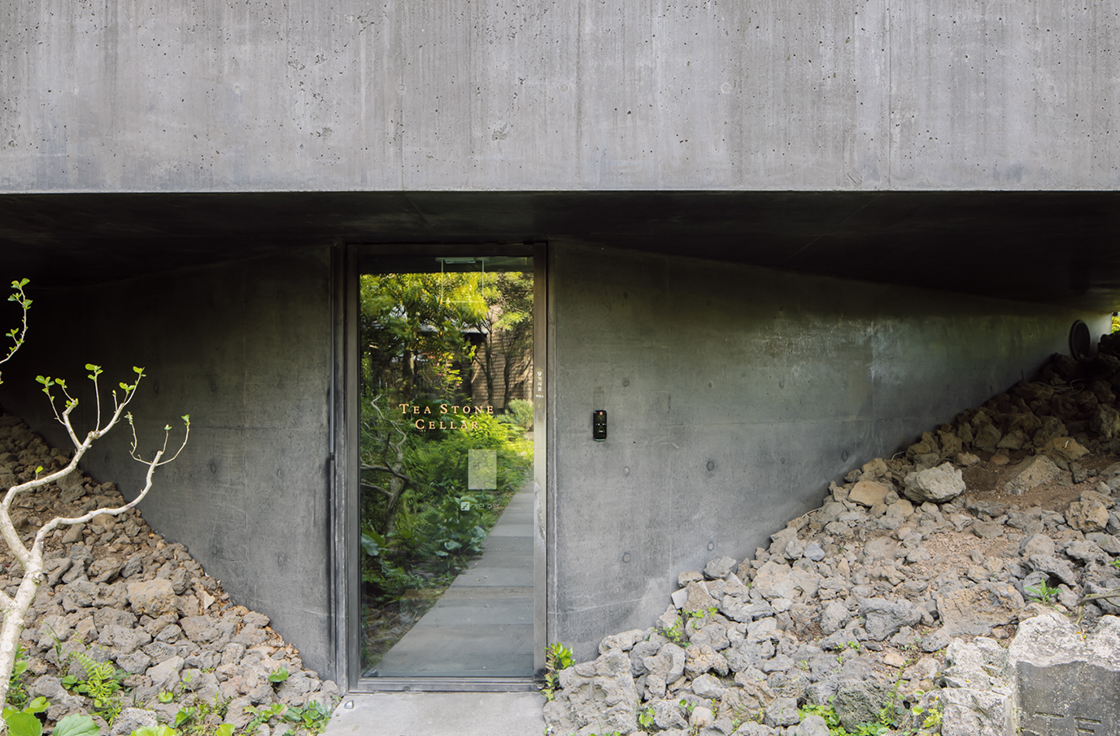 프리미엄 명차부터 티 푸드까지 이어지는 판매존을 지나 건물 밖으로 나오면 곧 숲길이 열립니다. 몇 걸음만 더 들어서면 검고 단단한 벼루를 닮은 건축물이 보이는데, 이곳이 바로 오설록의 또 다른 공간 ‘티스톤’이에요.