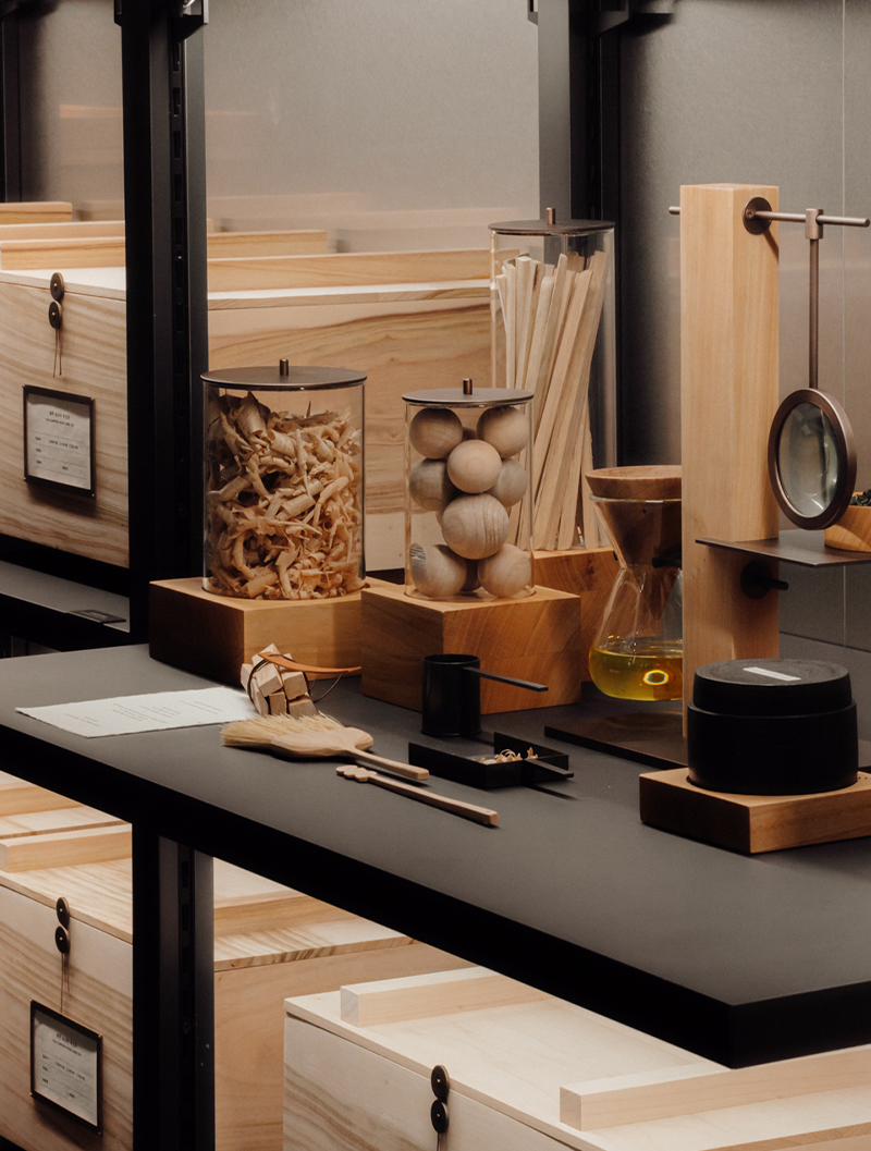나무, 도자, 금속, 유리 등 다양한 재료를 다루는 공예가들의 작품이 공간 곳곳에 배치되어 밀도 있는 장면을 만들어냅니다. 특히 각 나무의 성질에 맞게 배치된 공예적 디테일을 발견하는 재미도 느낄 수 있어요.