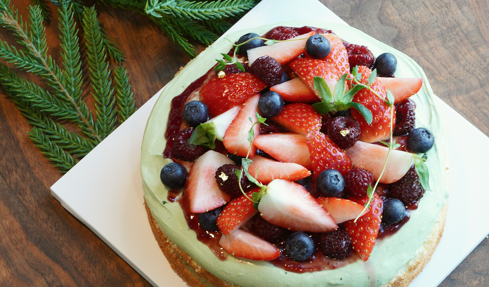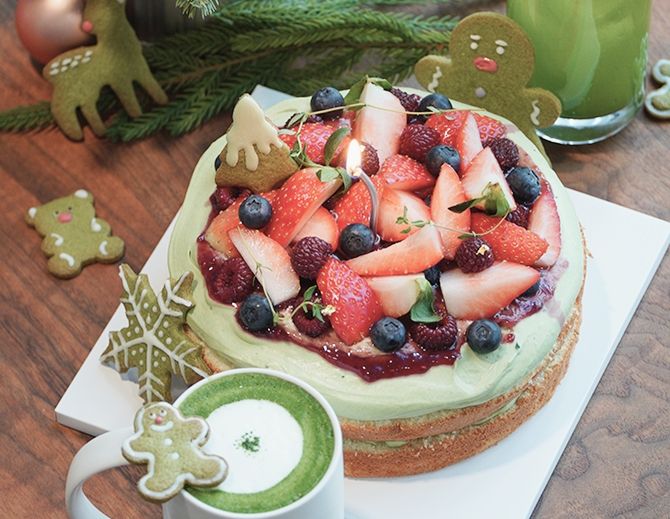 셔터를 누르게 만들 녹진한 말차 베리 케이크,