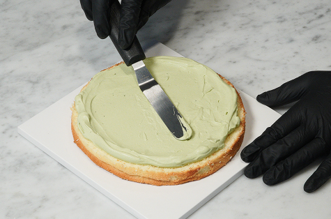 완성된 말차 크림을 두툼하고 고르게 펴 발라주세요.