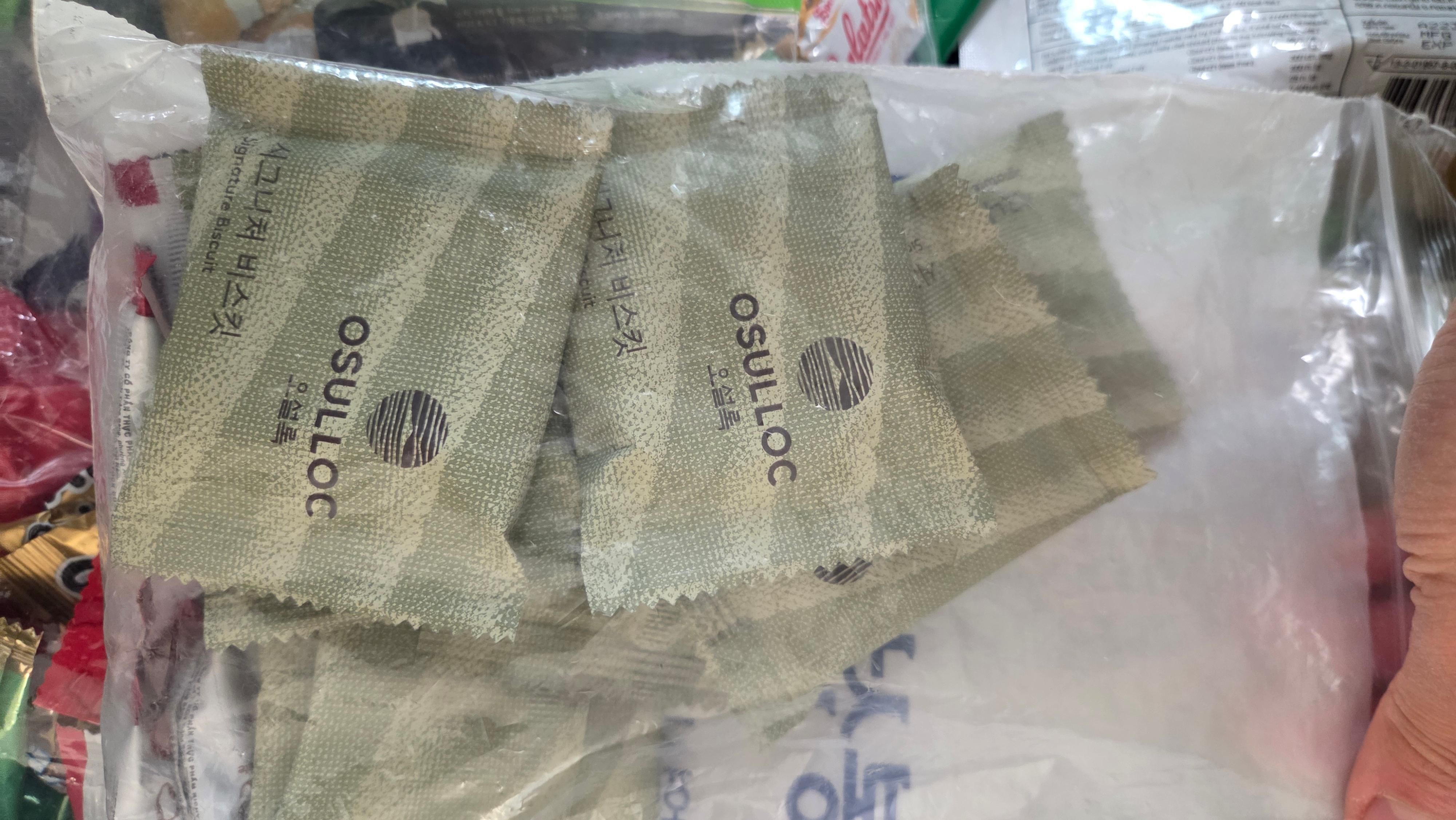원재료명 및 함량 설탕, 코코아버터(싱가포르산), 식물성유지(싱가포르산/팜분별유, 해바라기에스테르화유, 레시틴, 비타민E, 구연산), 박력분(밀:미국산), 혼합분유1[전지분유, 유청분말, 농축유단백], 혼합분유2(탈지분유, 유청분말), 난백액, 마가린[식물성유지, 가공유지, 유화제, 정제소금, 레시틴, 혼합제제(식물성유지, 베타카로틴(착색료), DL-알파-토코페롤)], 쇼트닝, 고형차(녹차:국산), 무염버터, 아몬드분말, 화이트컴파운드, 코코아분말, 레시틴, 폴리글리세린축합리시놀레인산에스테르, 향료(바닐린), 정제소금 [밀, 우유, 계란, 쇠고기, 대두 함유]