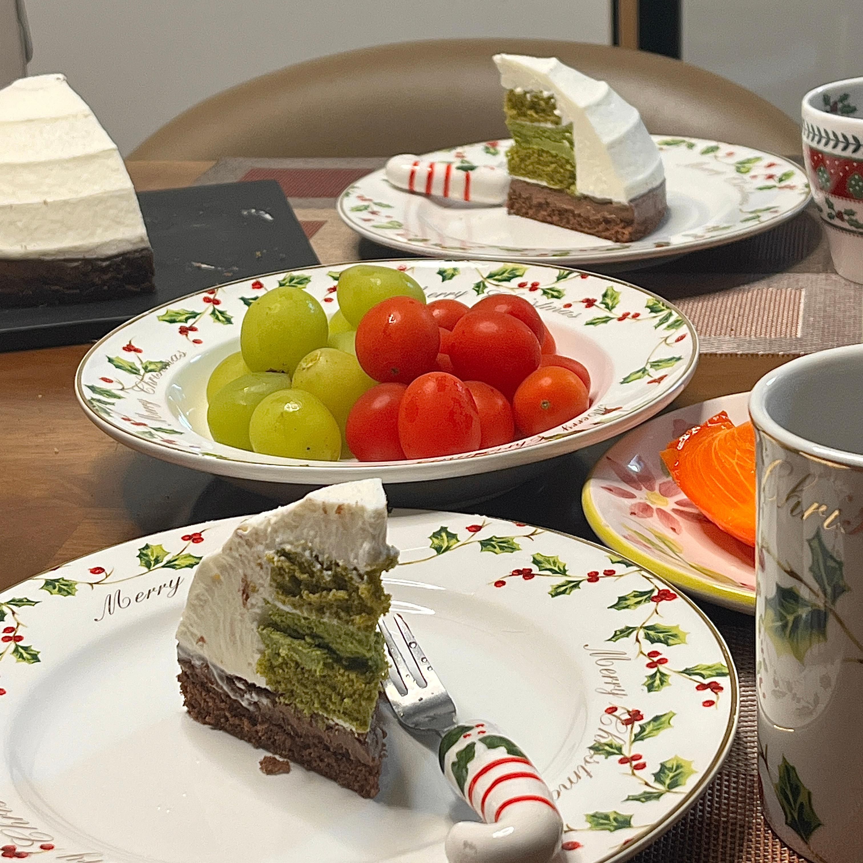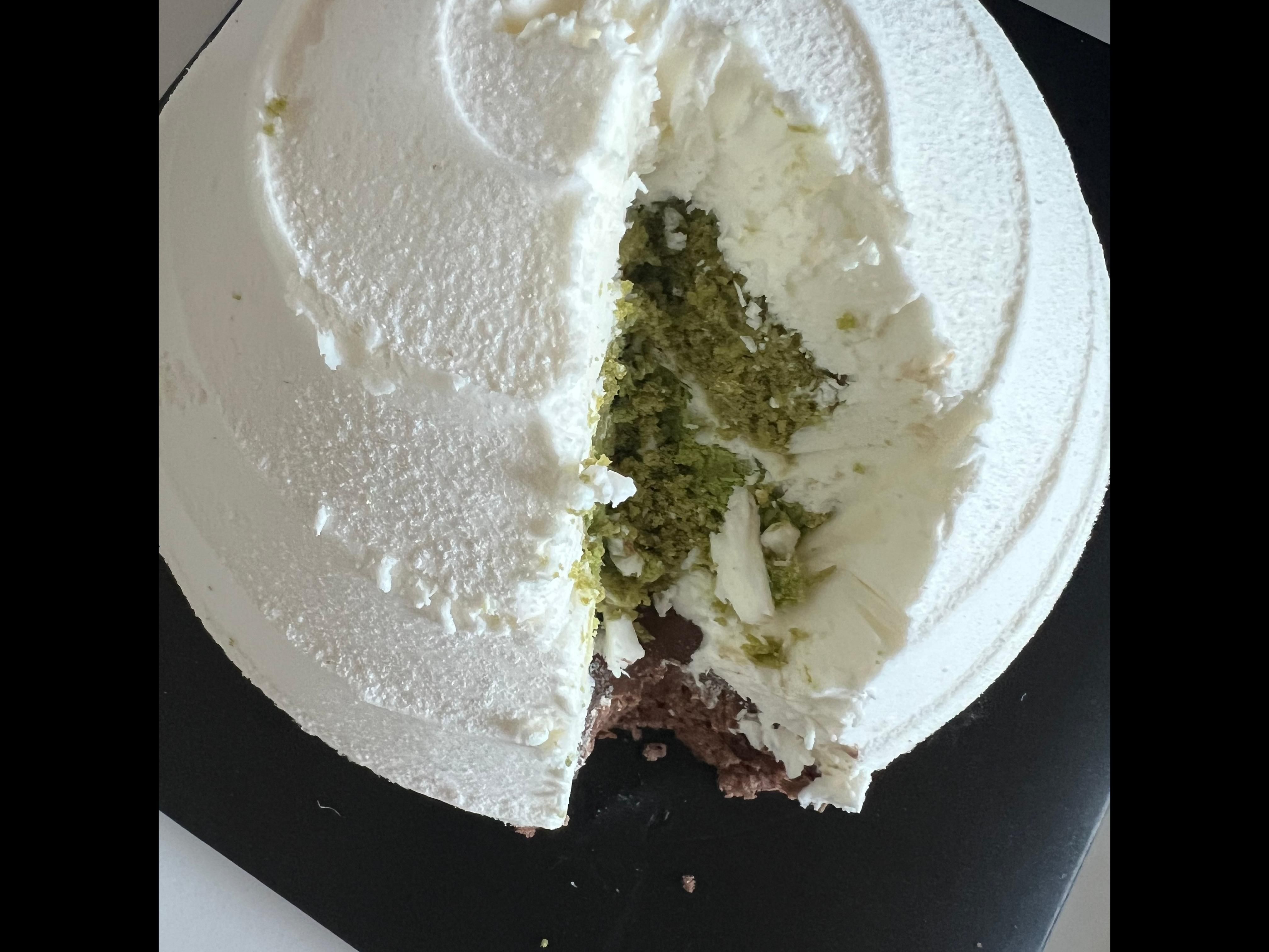 진한 녹차 크림과 초콜렛 가나슈, 크림치즈 생크림. 겨울 한라산을 닮은 레이어 케이크