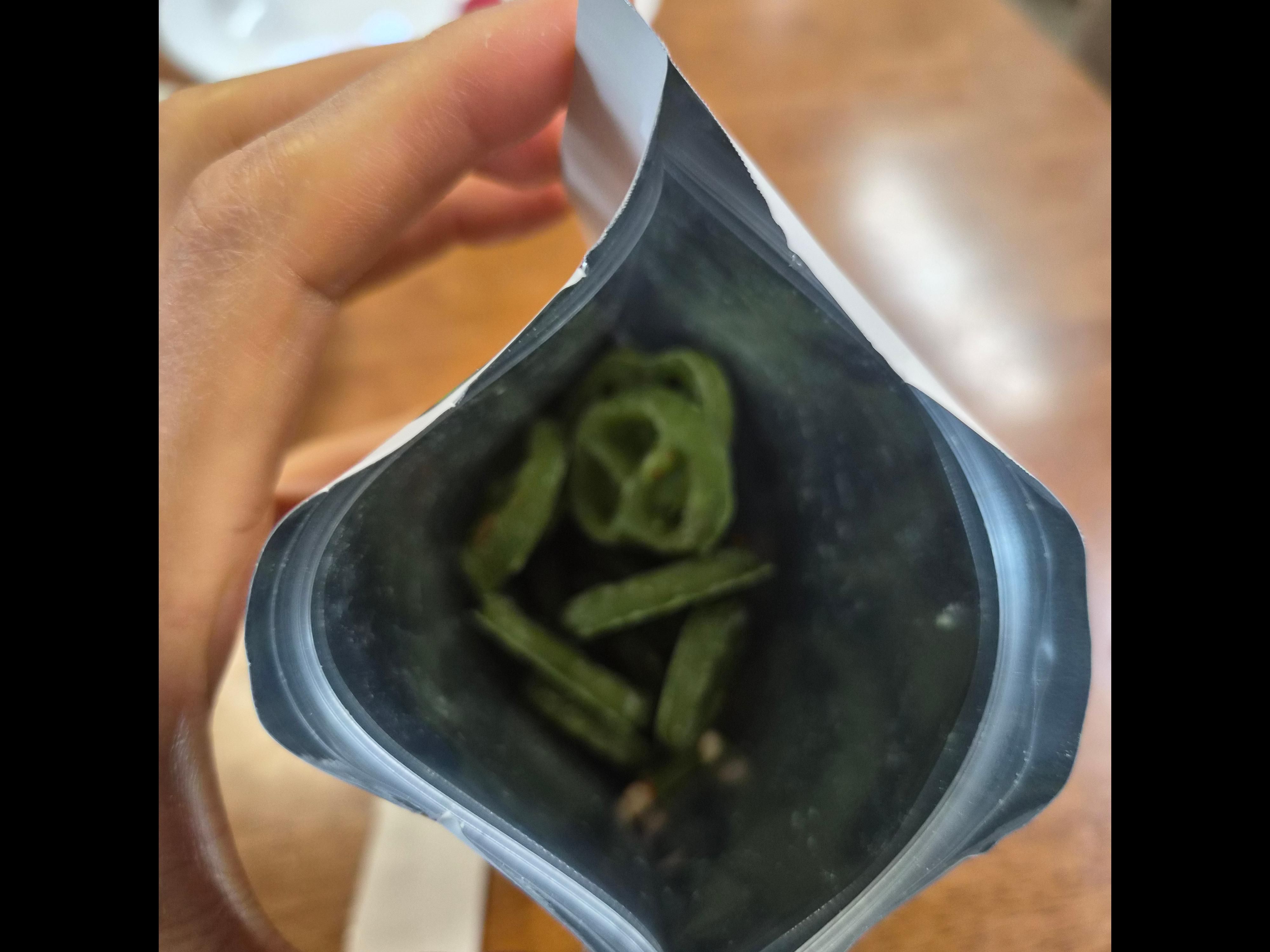 말차 프레첼은 가로 140mm, 높이 180mm의 파우치로 포장되어 있습니다.