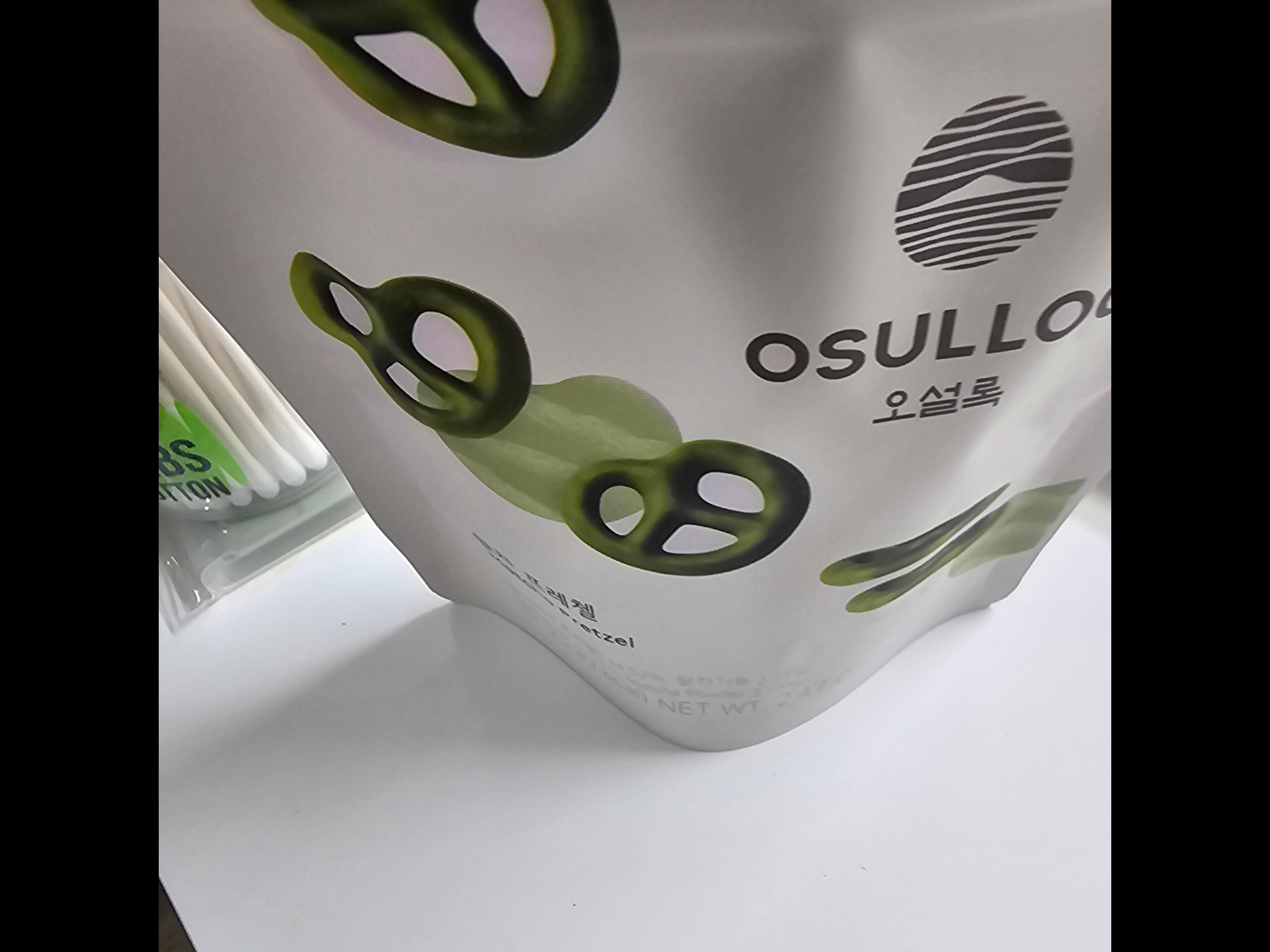 말차 프레첼은 가로 140mm, 높이 180mm의 파우치로 포장되어 있습니다.