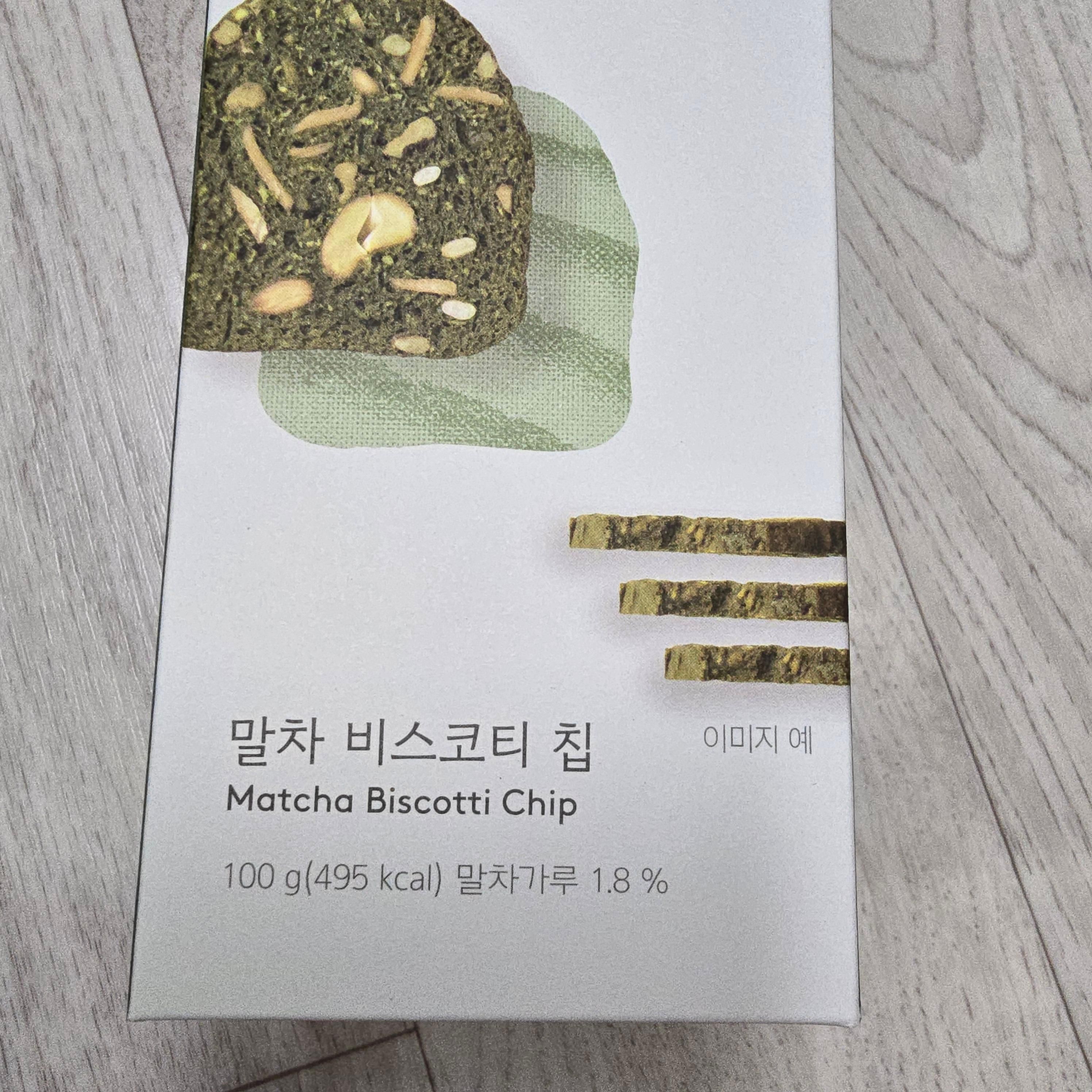 말차 비스코티 칩은 가로 75mm, 세로 57mm, 높이 167mm의 종이 박스로 포장되어 있습니다.