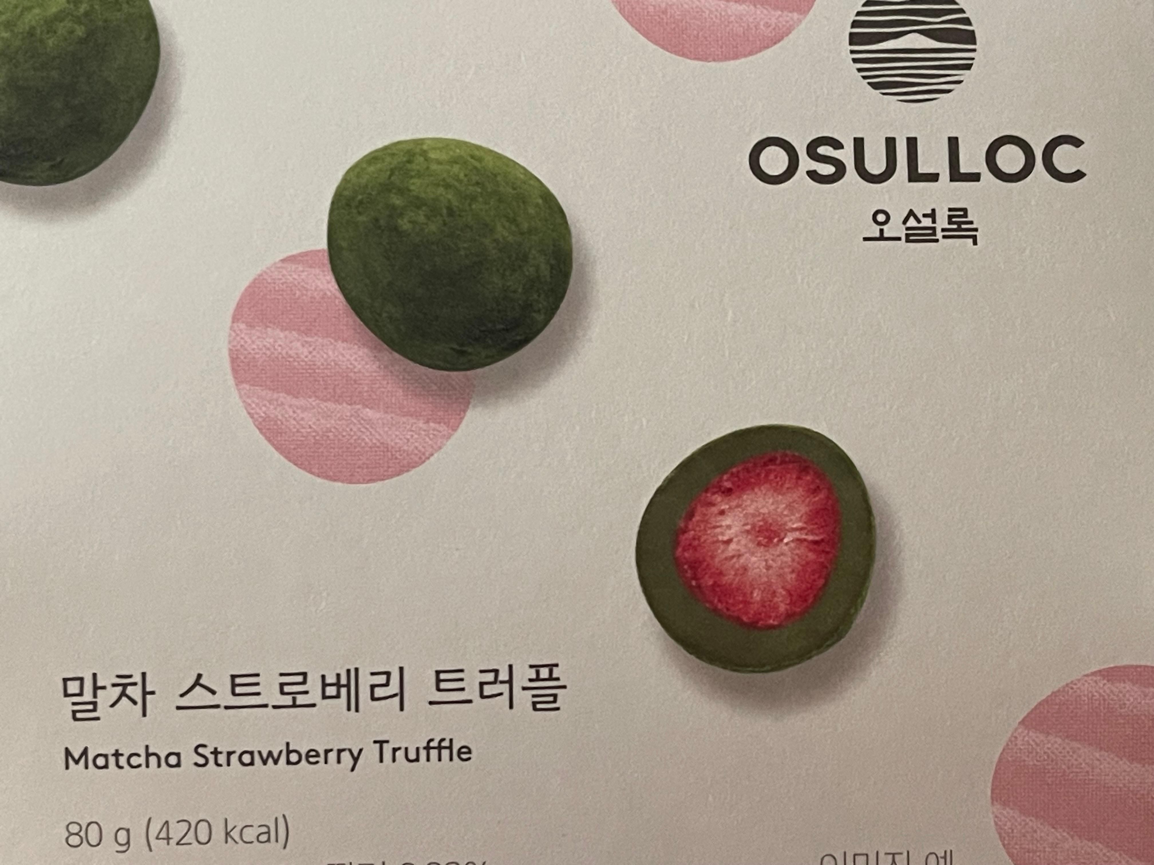| 원재료명 및 함량 | 준초콜릿[설탕, 코코아버터(싱가포르산), 가공유지(분별유/싱가포르산), 탈지분유, 유당, 말차가루(녹차:국산)], 딸기(중국산/딸기 100%), 말차가루(녹차:국산) / 우유, 대두 함유 | ||