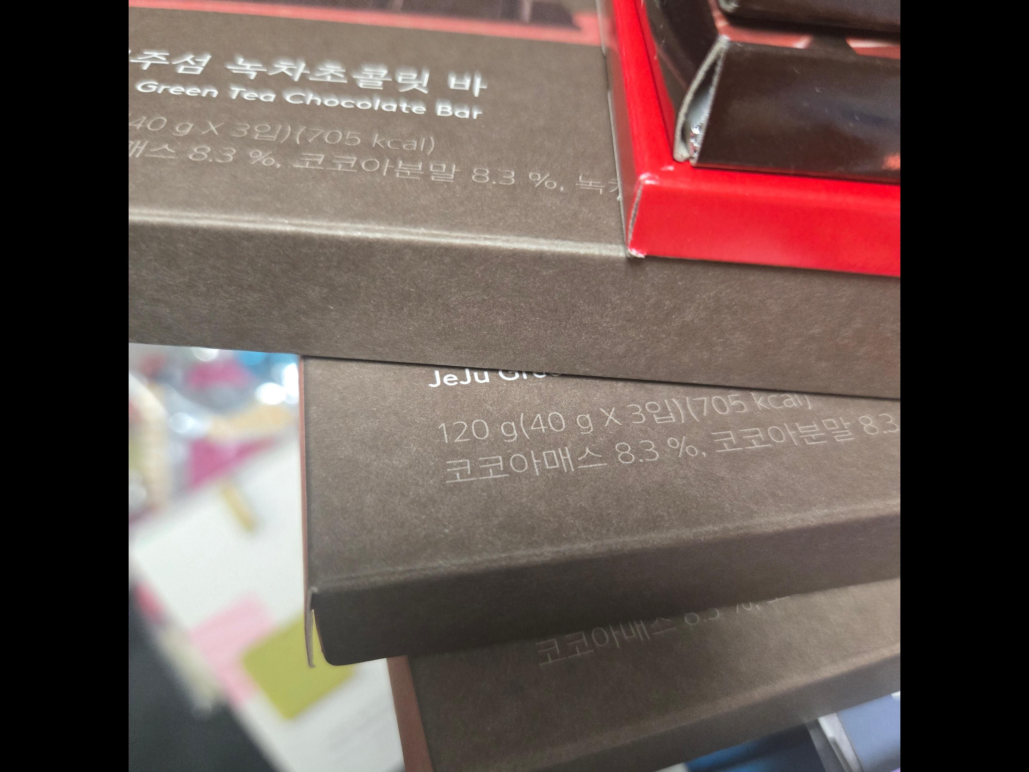 | 원재료명 및 함량 | 다크쉘초콜릿[설탕,가공유지(분별유)(싱가포르산),코코아매스(스페인산),코코아분말(말레이시아산),혼합분유],녹차센터크림[설탕,가공유지1(분별유)(싱 가포르산),가공유지2(분별유)(팜분별유:말레이시아산),전지분유,혼합분유, 첫물말차(녹차100%:제주산)] / 우유, 대두 함유 | ||