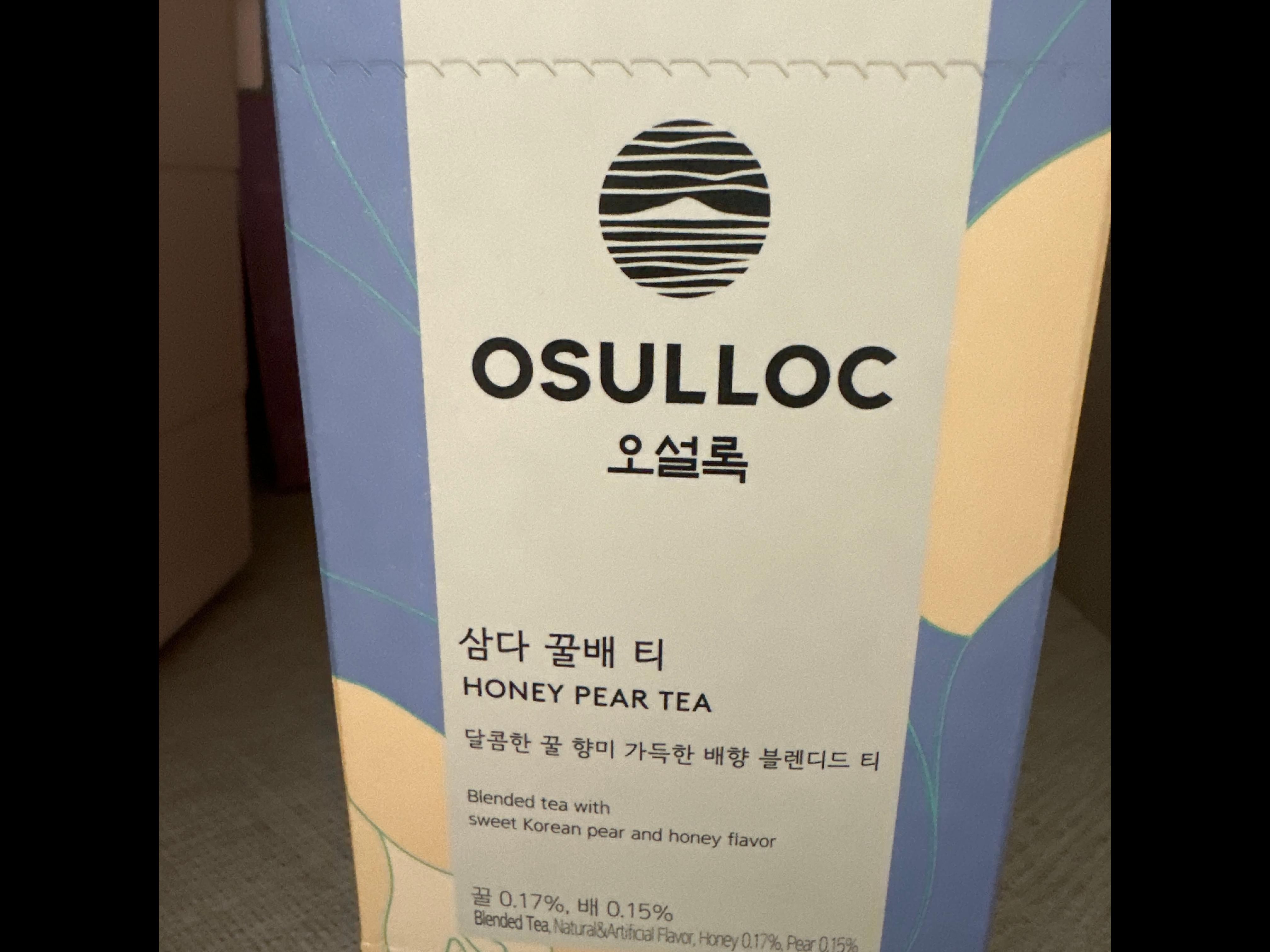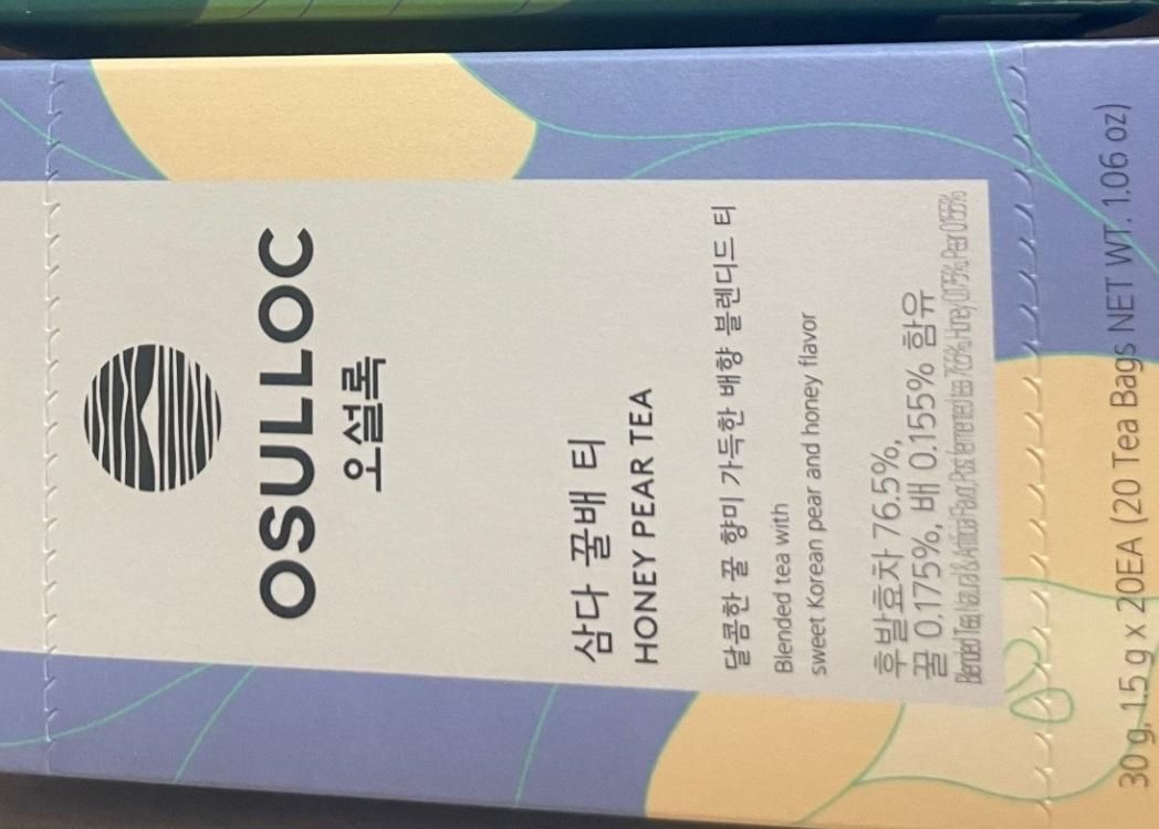 | 원재료명 및 함량 | 후발효차(제주산), 설탕, 배향향료제제(합성향료, 주정, 천연향료, 젖산, 프로필렌글리콜, 정제수), 꿀분말(꿀(국산)), 배농축혼합분말(배(국산)) | ||