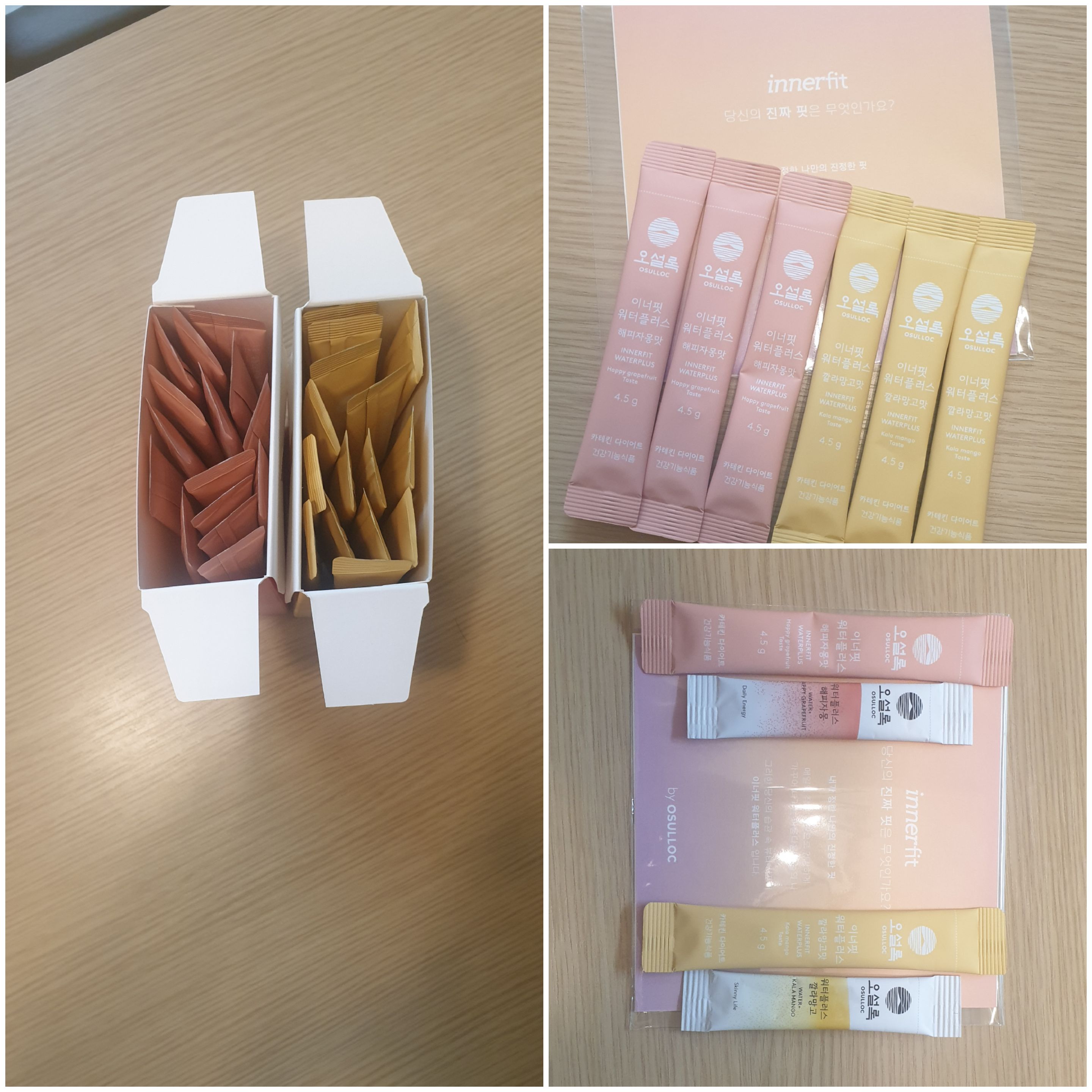 드디어 기다렸던 워터플러스.아니 이너핏워터플러스.^^ 워터플러스의 처음 만남은 아마도 2018,2019년부터 마신것같다. 처음에는 뷰티플라이프핑크샤워,스카니라이프레몬라임 두 종류. 간편하게 물에 타서 마실수 있고 맛도 부담없이 좋아서 계속마셨음. 내가 즐겨 마셨던 레몬라임.근데.ㅠㅠ 작년에 리뉴얼 되면서 워터플러스 깔라망고, 워터플러스 해피자몽, 새로 나온 워터플러스 체리플럼.역시 기존제품처럼 물에 타서 마시는 즐거움.^^ 주의사항은 녹차카테킨 때문에 하루에 3번이상 마시지 않기를.ㅋㅋ 더욱이 버라이티팩 구성 제품이 있어서 가격도 좋고. 세가지 맛을 언제든 골라 마실수가 있어서 정말정말 좋았다. 지인들 선물도 많이많이 했는데..어느날 리뉴얼된다면 판매중지.ㅠㅠ 다시 한번 제품을 업그레이 한다기에.기대반,걱정반. 하지만 걱정은 나의 어긋난 생각뿐...정말로 요즘 트렌드에 딱 맞는 제품으로 업업되어 변신된 이너핏워터플러스 해피자몽,깔라망고. 제품 색깔부터 고급스럽게.^^진짜 대박으로 색깔잘뽑아냈음. 한포한포 사이즈도 꺼지고...그만큼 함량도 많이 좋아졌다는 사실. 예전 워터플러스에도 녹차추출물 카테킨이 들어있어서 체지방감소에 도움을 준다했지만, 빠지고 있겠지 하면서 믿음으로 즐겁게 마셨는데. 이제는 콜라겐 함유까지 포함 피부보습까지. 일석이조의 효과를 맘껏 누릴수 있게된 이너핏워터플스.^^ 네이버 라이브방송으로 나오자마자 할인되어 제품구매. 오설록몰에서 제품구성이 나오자마자.다시 구매함. 할인은 하지 않지만~^^ 이너핏워터플러스 루틴세트를 구매하면. 낱개로 이너핏워터플러스 4개입을 주고.3만원이상구해 두개더.^^ 내가 즐겨 사용하는 그린티 시트 마스크2입. 2주트래커 스티커 세트2개.매일매일 마시며 붙이는 재미쏠쏠. 따지고 보면 만원가량의 사은품 아주아주 만족하다는 생각. 맛은 리뉴얼되기전 제품들보다 무겁다는 생각이든다. 아마도 콜라겐 성분과 제품성분들이 업업 되어서 그렇다는 지극히 개인적인 생각이다. 하지만 나쁘다는것이 아니라 맛있게 무겁다는 것이다.가볍지 않고 품격있게 말이다. 이너핏워터플러스 깔라망고.깔라망고의 신맛을 줄이고 향으로만 망고맛을 느낄수 있어서 정말로 깔끔하게 맛있게 마실수 있다. 이너핏워터플러스 해피자몽.자몽의 시큼함과 씁쓸함을 줄이고 자몽의 고유맛을 느끼며 달달함으로 마실수 있어서 좋다. 탄산.음료 섞어.혹은 얼음으로 만들어 마시는 방법을 다양하게 보여주는데 이너핏노란 워터보틀에 물과함께 진짜 맛을 느끼며 있는 그대로 마시는것이 가장 편하고...건강하다는 생각.ㅋㅋ 요즘은 매일매일 실내자전거 30분 운동후 시원하게 건강하게 기분좋게 마시고 있다.체중감량 하면서 체지방감소 피부보습까지 건강함으로 정말로 나만의 핏을 맘껏 만들어보고싶다. 한달후 내 몸의 작은 변화들을 기대하면서 말이다^^ 마지막으로 내가 오랫동안 믿음으로 마셔왔고 앞으로도 계속 마실거라는 오설록 제품이기에 망설임없이 믿고 구매한 탁월한 선택. 꼭!한번 마셔보면 계속 마실수밖에 없을 것입니다.