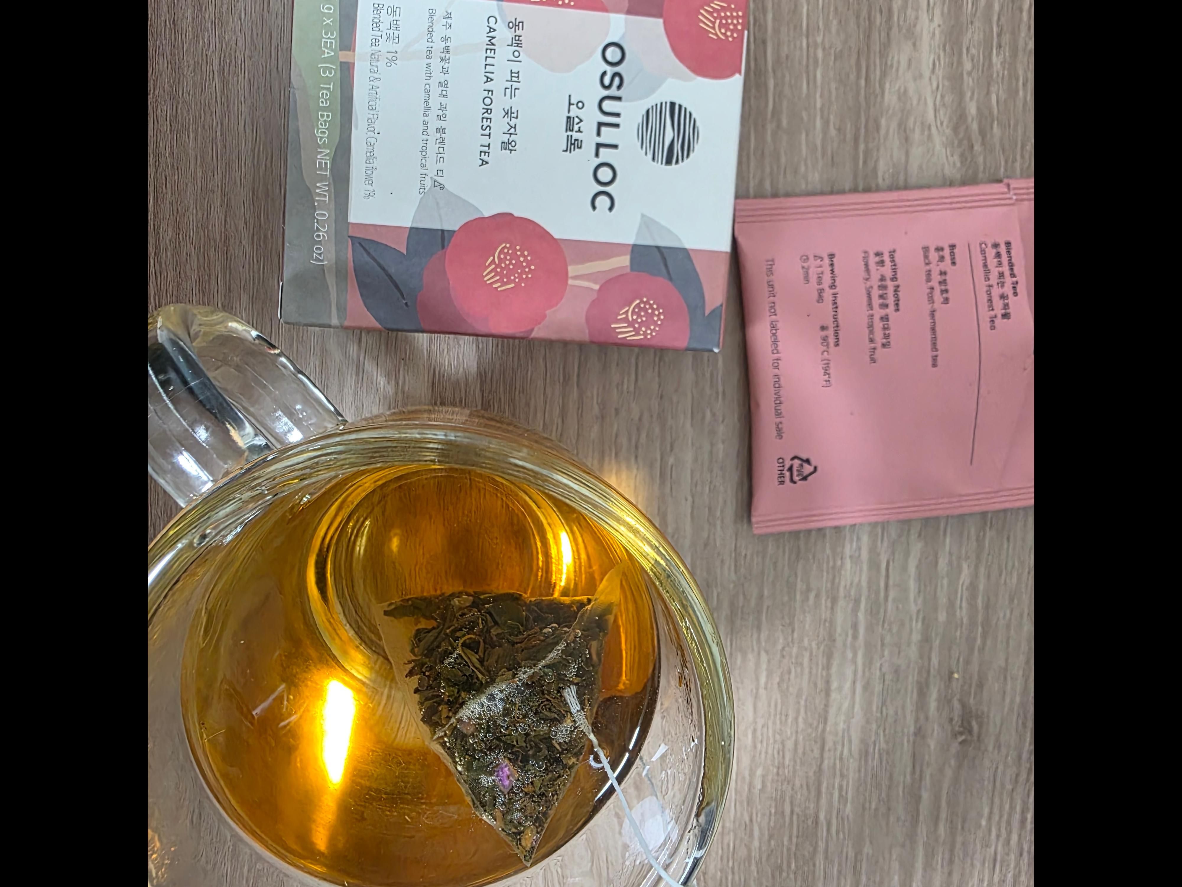 | 원재료명 및 함량 | 홍차(제주산), 후발효차(제주산), 캔디류(별사탕), 파인애플다이스(파인애플,설탕,구연산)(태국산), 향료(동백꽃향), 동백꽃(제주산) | ||