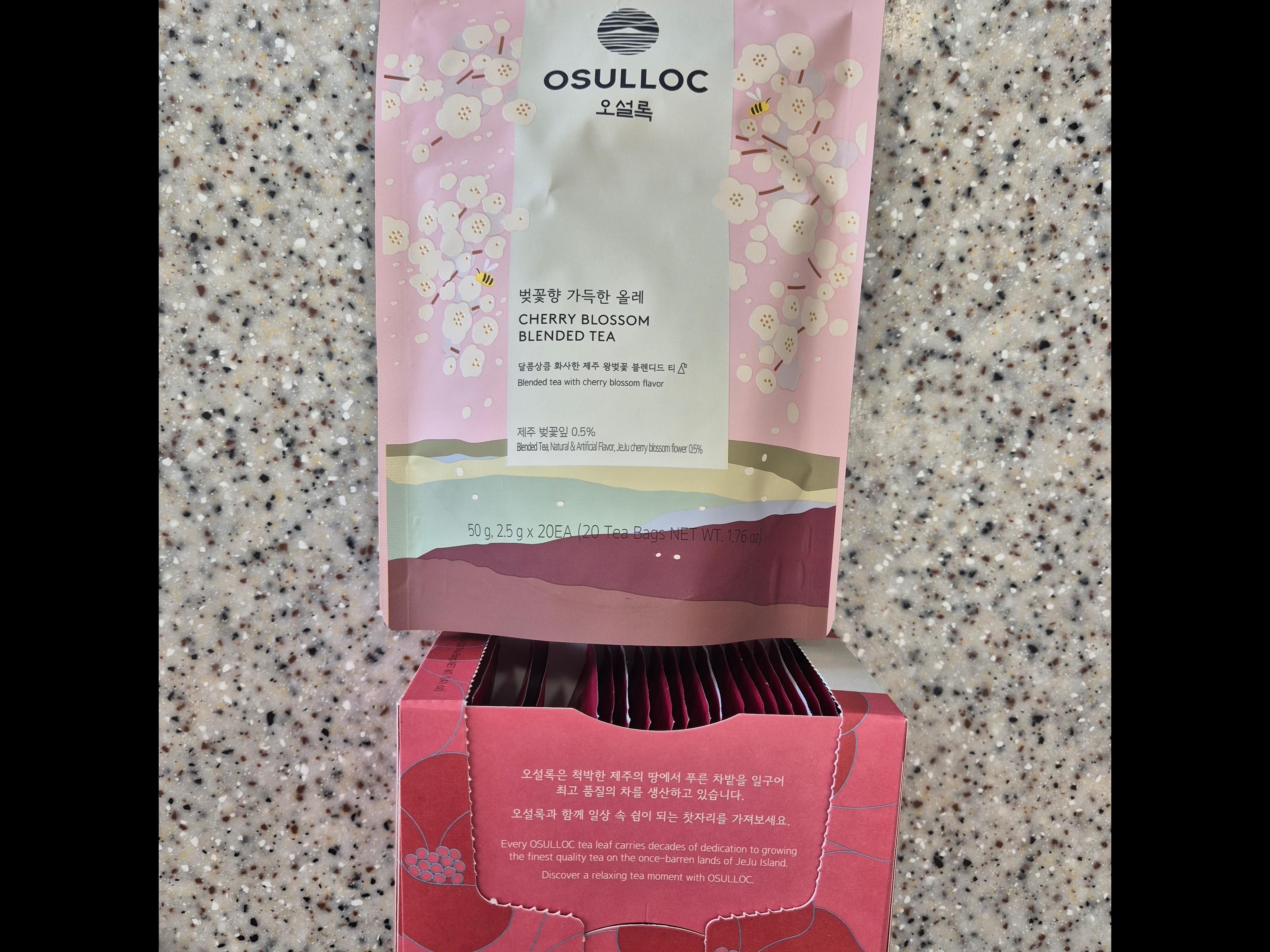 | 원재료명 및 함량 | 후발효차(제주산), 홍차(제주산), 로즈힙(칠레산), 파인애플다이스(파인애플,설탕,구연산), 사과다이스, 히비스커스, 향료(벚꽃향), 건조벚꽃잎(제주산) | ||