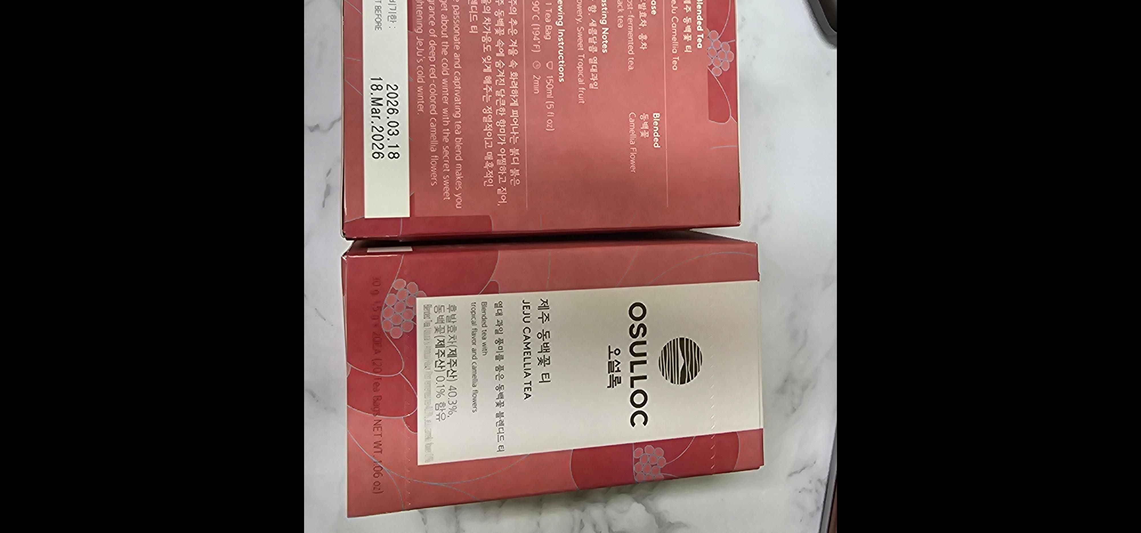 | 원재료명 및 함량 | 후발효차(제주산), 홍차(제주산), 설탕, 향료(동백꽃향), 후발효차열수추출물(제주산), 동백꽃(제주산) | ||