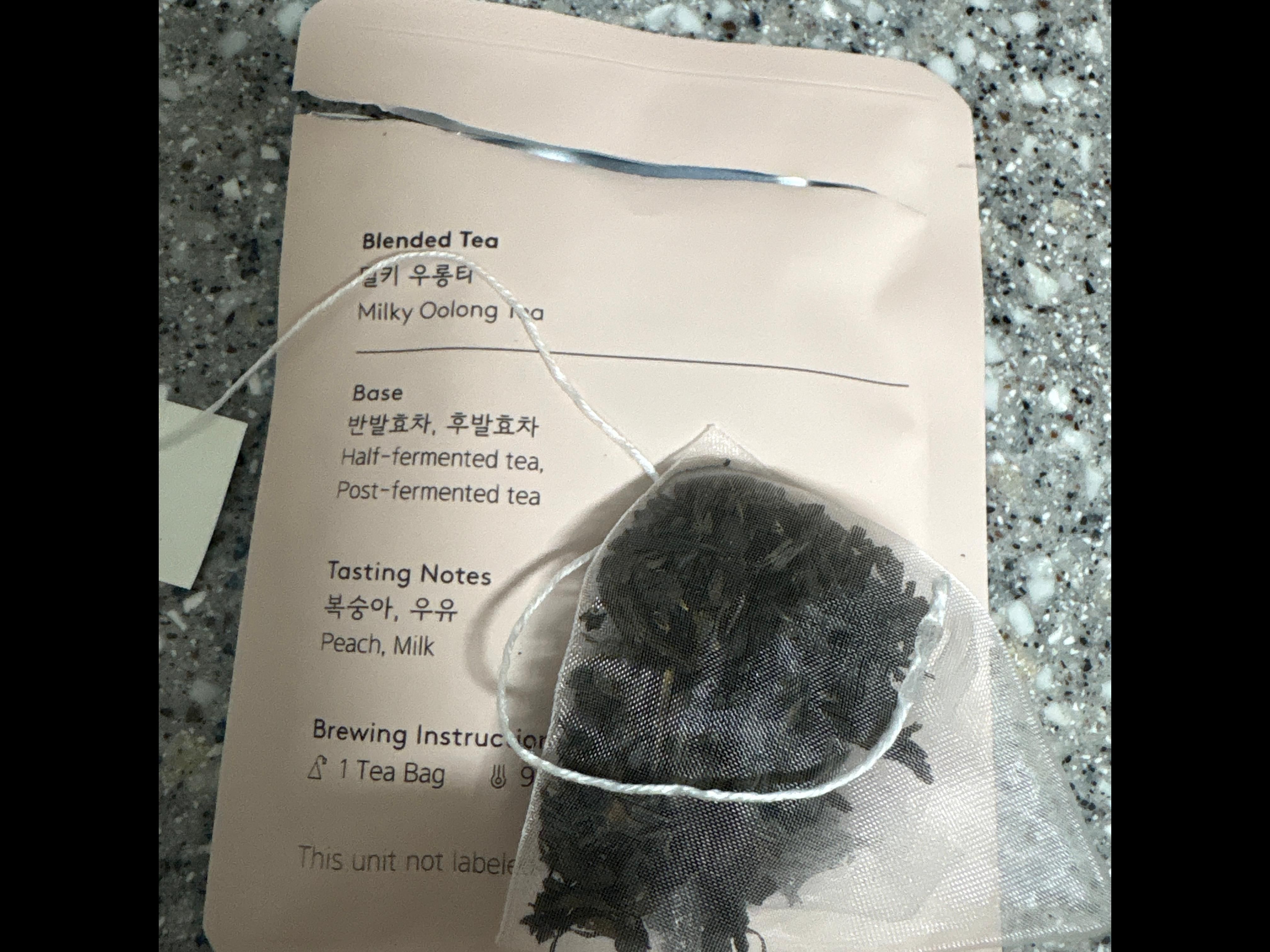 | 원재료명 및 함량 | 반발효차(제주산), 후발효차(제주산), 향료(밀크피치향), 천연향료(복숭아향), 분리유청단백(미국산) [우유,대두,복숭아 함유] | ||