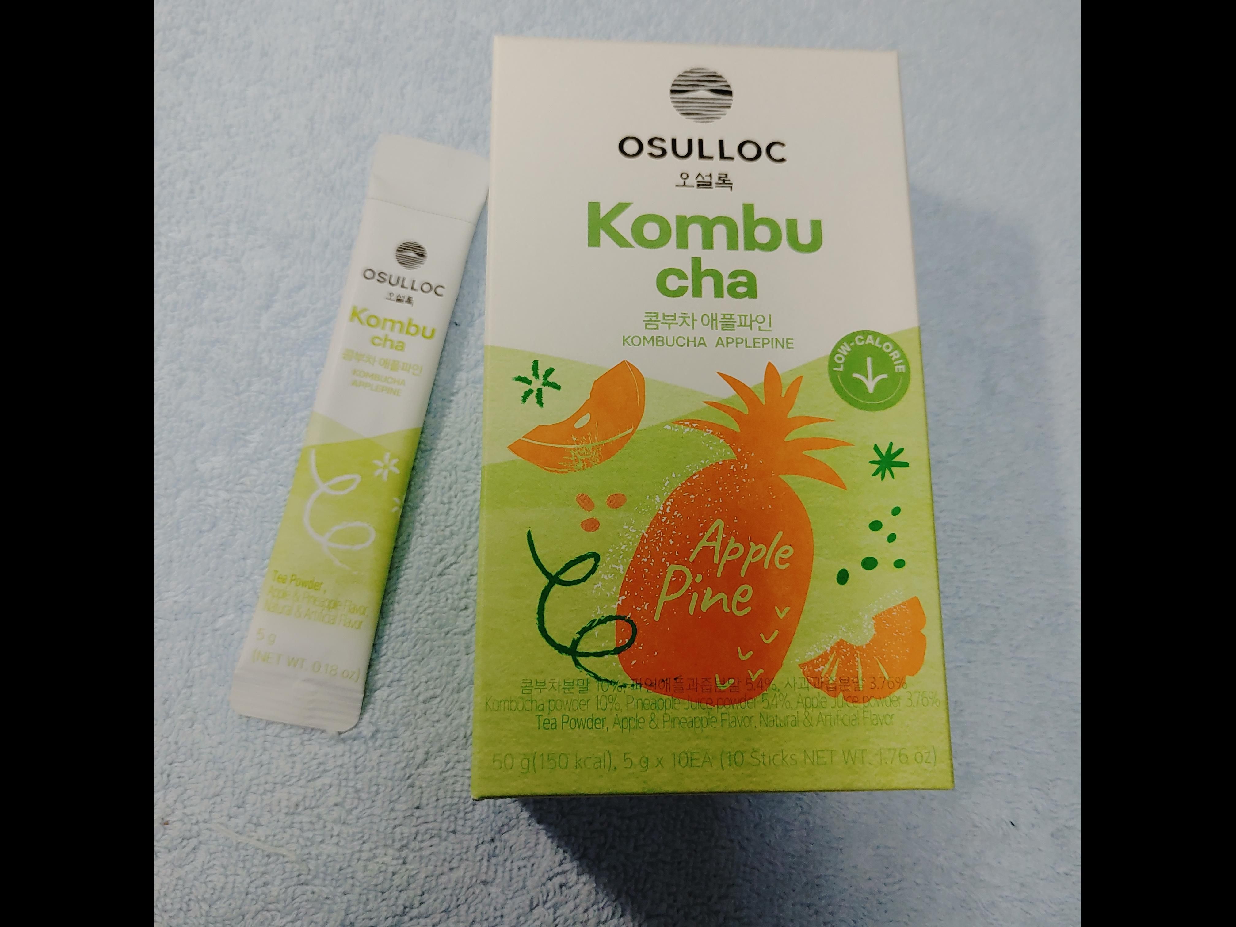 | 원재료명 및 함량 | 무수구연산, 탄산수소나트륨, 에리스리톨10%, 콤부차분말(콤부차발효액(정제수, 프락토올리고당, 사양벌꿀(국산), 녹차(제주산), 홍차(제주산)), 난소화성말토덱스트린, 아라비아검)), 효소처리스테비아, 파인애플과즙분말(덱스트린, 파인애플과즙고형분(태국산)), 향료(파인애플분말향), 사과향분말혼합제제(덱스트린, 프로필렌글리콜, 주정, 합성향료, 천연향료), 비타민C, 사과과즙분말(덱스트린, 사과농축액(국산)), 녹차추출물, 이산화규소, BCAA(L-발린, L-로이신, L-이소로이신), 비타민B2, 프로바이오틱스, 구아검 [밀, 대두 함유] | ||