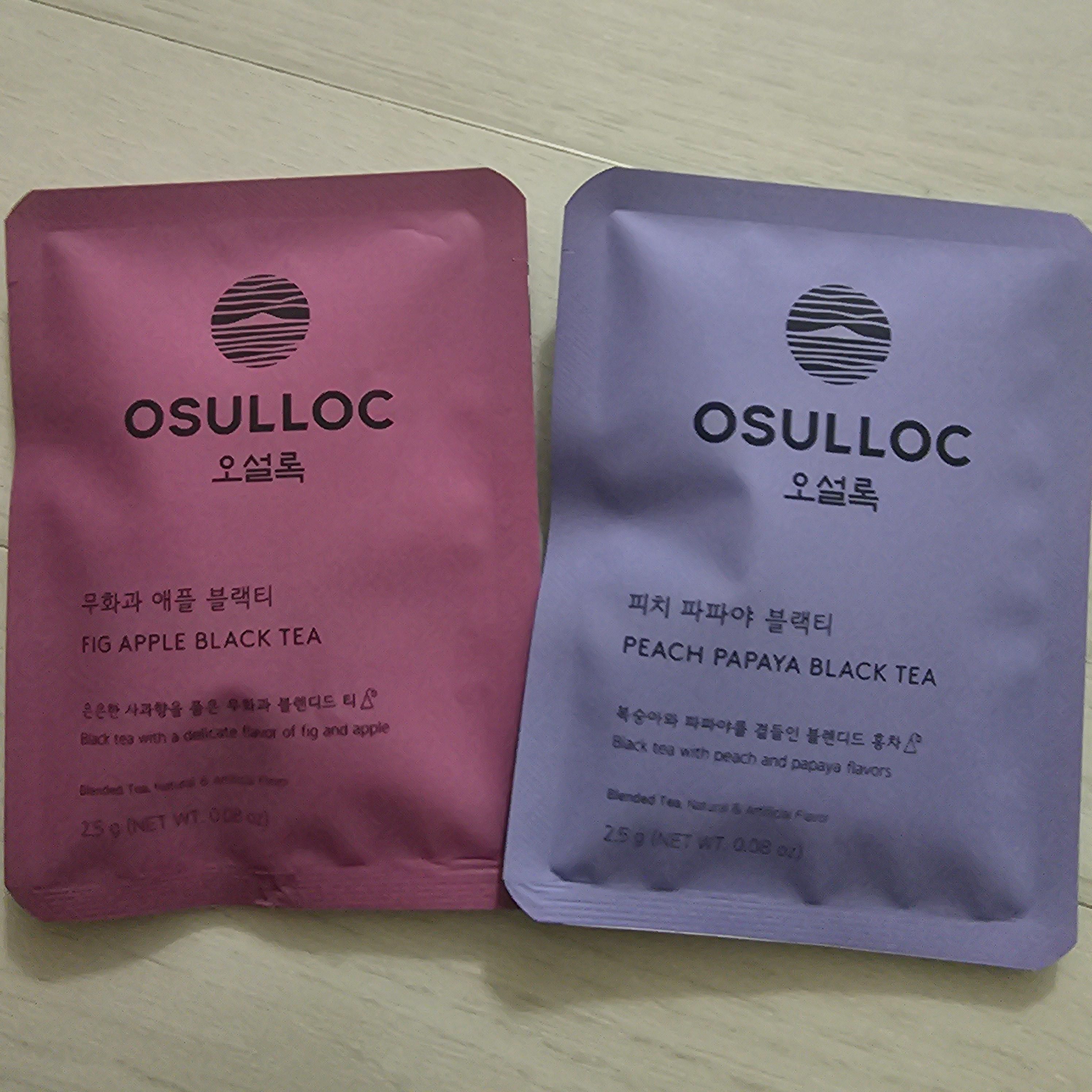| 원재료명 및 함량 | •제품명 : 오설록 우전 •원재료명 : 유기농 녹차 (제주산) 100% •유기농인증번호 : 제 12800178호 •제품명 : 오설록 홍우전 •원재료명 : 유기농 반발효차 (제주산) 100% •유기농인증번호 : 제 12800178호 •제품명 : 오설록 세작 •원재료명 : 유기농 녹차(제주산) 100% •유기농인증번호 : 제 12800178호 •제품명 : 오설록 캐모마일 블렌드 •원재료명 : 캐모마일(이집트산),진피(국산),사과다이스(튀르키예산),레몬머틀,장미꽃잎 •제품명 : 오설록 히비스커스 선샤인 •원재료명 : 히비스커스(나이지리아산),파인애플다이스(파인애플,설탕,구연산)(태국산),로즈힙(칠레산),사과다이스,오렌지필,스피어민트,레몬머틀,천연향료(혼합과일향),장미꽃잎 •제품명 : 오설록 달빛걷기 •원재료명 : 후발효차(제주산),캔디류(별사탕),돌배(국산),배향향료제제(합성향료,주정,천연향료,젖산,프로필렌글리콜, 정제수) •제품명 : 오설록 삼다연 제주영귤 •원재료명 : 후발효차(제주산),천연향료 2종,제주영귤믹스(제주귤피(제주산),제주영귤(제주산)) •제품명 : 오설록 피치 파파야 블랙티 •원재료명 : 홍차(인도산84.4%,제주산15.6%),로즈힙(칠레산),파파야다이스(파파야,설탕,구연산)(태국산),향료(복숭아향),장미꽃잎,천연향료(복숭아향) [복숭아 함유] •제품명 : 오설록 무화과 애플 블랙티 •원재료명 : 홍차(인도산 91.7%,제주산 8.3%),사과다이스(튀르키예산),카카오닙스(페루산),로즈힙,향료1(무화과향),향료2(무화과향),건조 무화과다이스(무화과:국산), 장미꽃잎 |