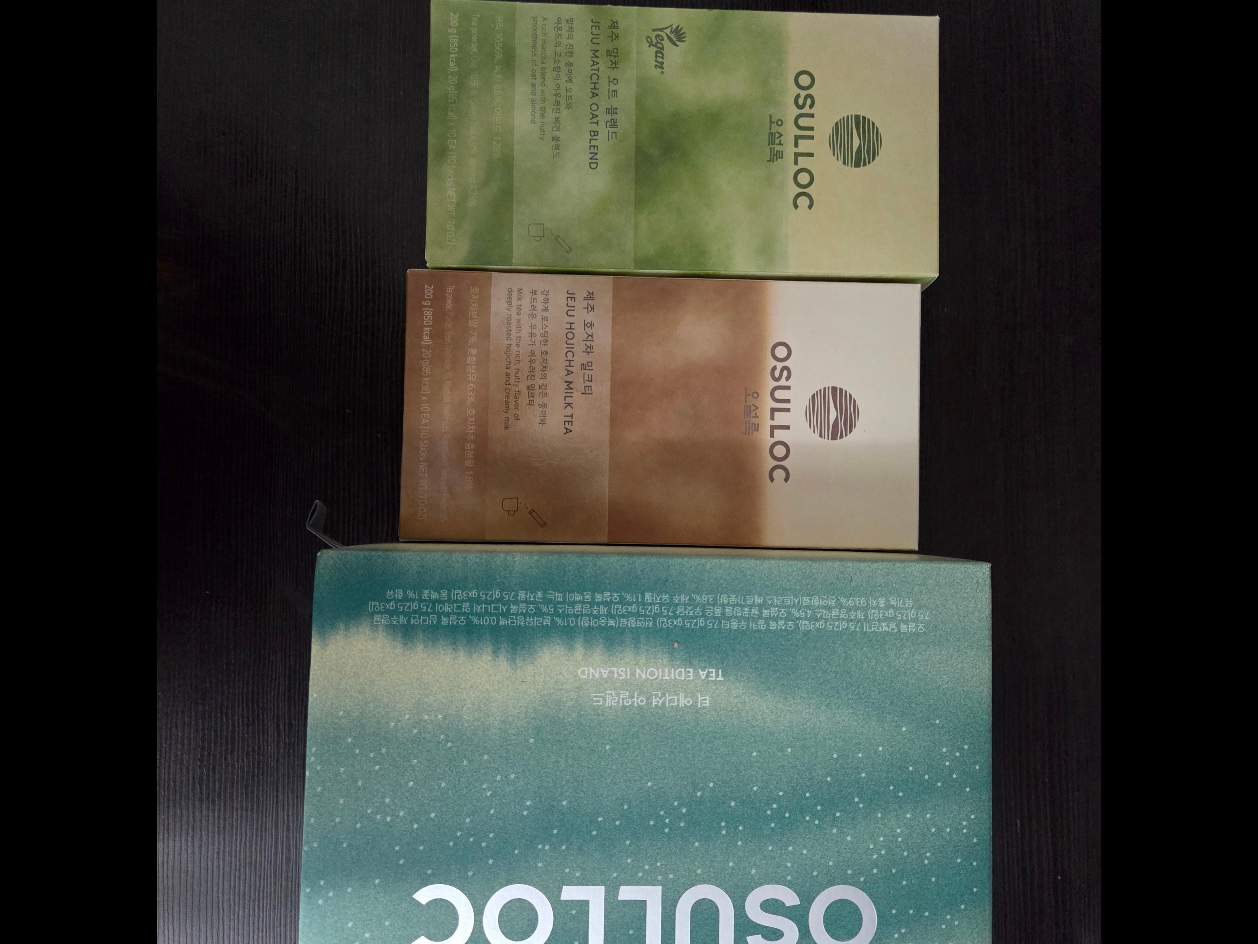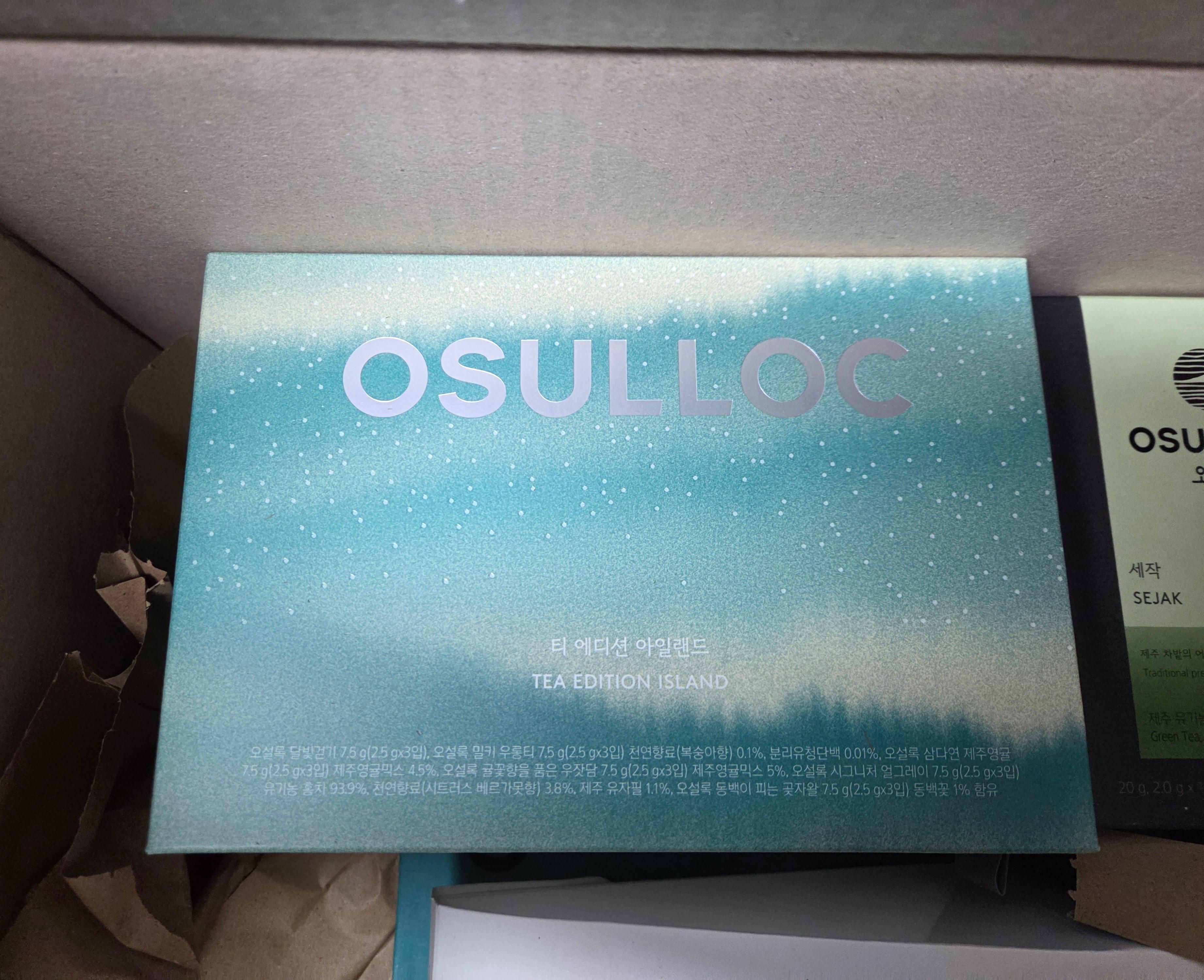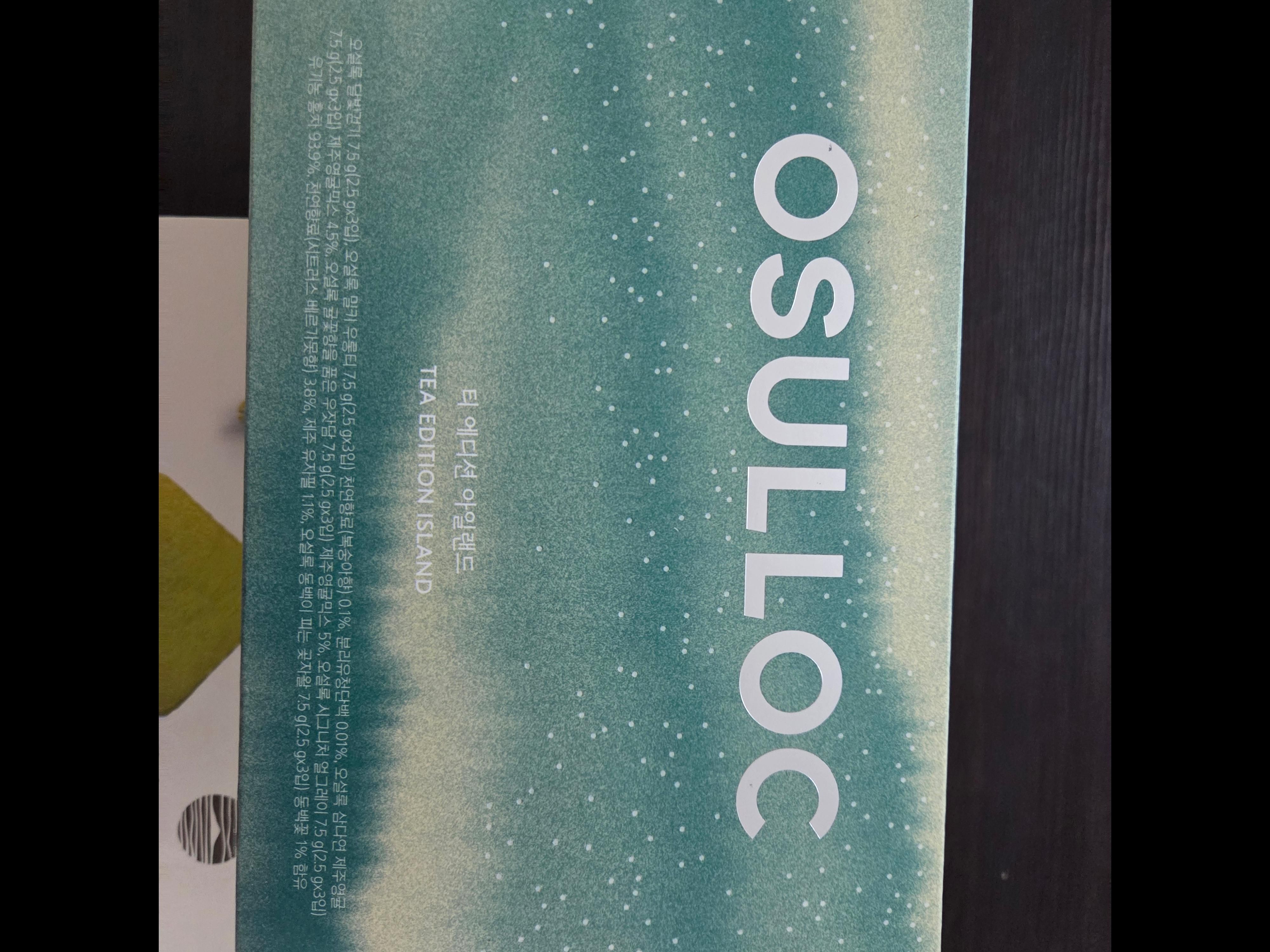 | 원재료명 및 함량 | • 제품명 : 오설록 달빛걷기 • 원재료명 및 함량 : 후발효차(제주산), 캔디류(별사탕), 돌배(국산), 배향향료제제(합성향료,주정, 천연향료, 젖산, 프로필렌글리콜, 정제수) • 제품명 : 오설록 밀키 우롱티 • 원재료명 및 함량 : 반발효차(제주산),후발효차(제주산),향료(밀크피치향),천연향료(복숭아향),분리유청단백(미국산) [우유,대두,복숭아 함유] • 제품명 : 오설록 시그니처 얼그레이 • 원재료명 및 함량 : 유기농 홍차(인도산89.35%,제주산10.65%),천연향료(시트러스 베르가못향),유기농 후발효차(제주산),유자필(제주산) *유기농원료 총함량 : 95.1% • 유기농인증번호 : 제 12800178호 • 제품명 : 오설록 동백이 피는 곶자왈 • 원재료명 및 함량 : 홍차(제주산), 후발효차(제주산), 캔디류(별사탕), 파인애플다이스(파인애플,설탕,구연산)(태국산), 향료(동백꽃향), 동백꽃(제주산) • 제품명 : 오설록 귤꽃향을 품은 우잣담 • 원재료명 및 함량 : 후발효차(제주산), 반발효차(제주산), 제주영귤믹스(제주귤피(제주산),제주영귤(제주산)), 마리골드, 향료(귤꽃향) • 제품명 : 오설록 삼다연 제주영귤 • 원재료명 및 함량 : 후발효차(제주산),천연향료(영귤향),제주영귤믹스(제주귤피(제주산),제주영귤(제주산)) |