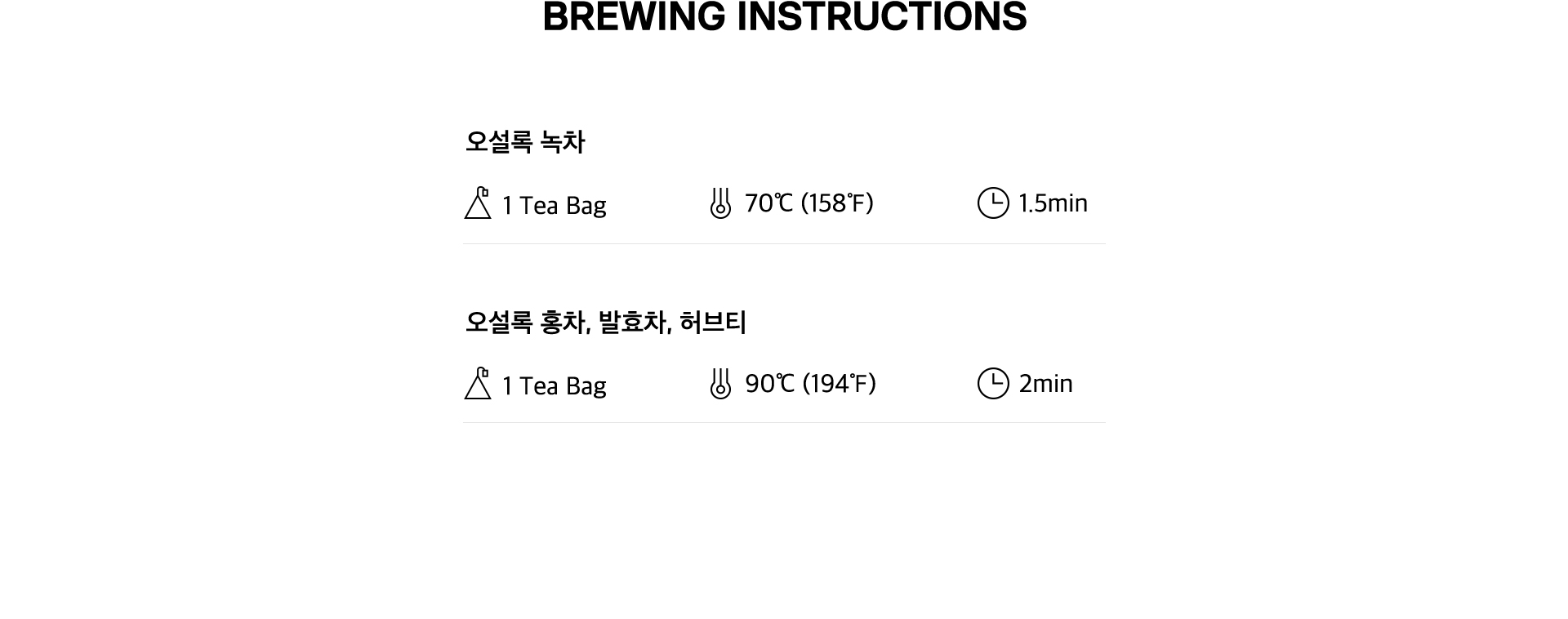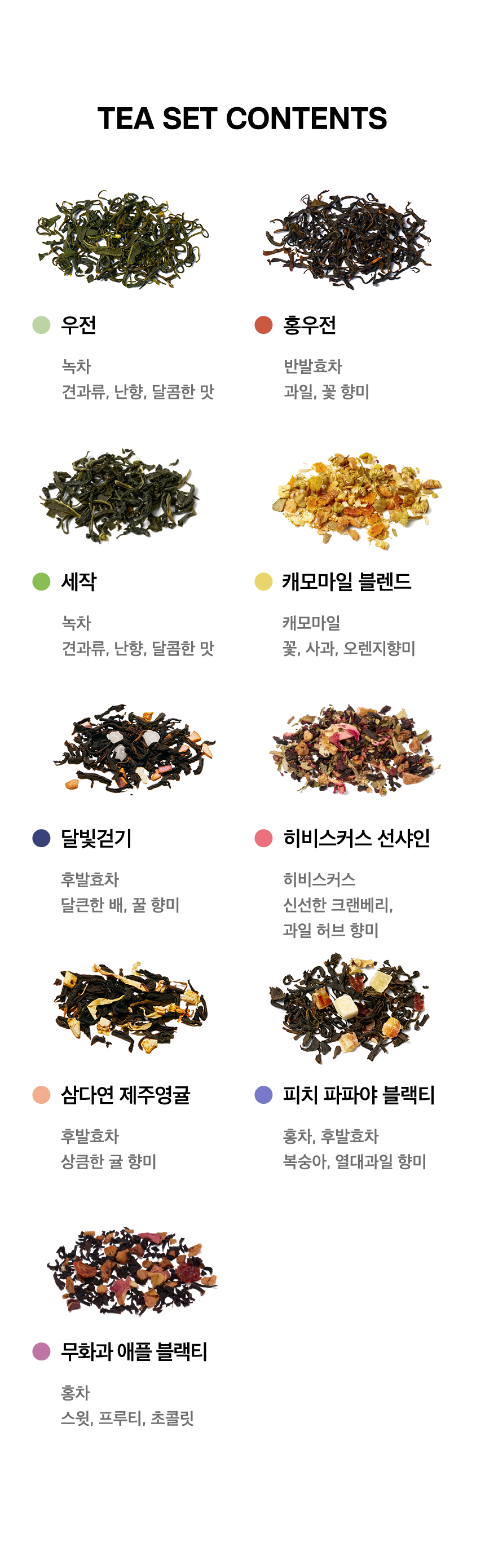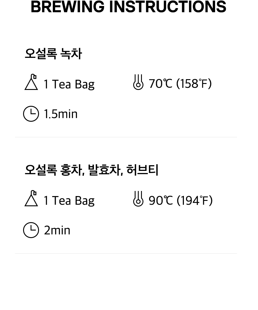 | 보관시 주의사항 | 고온 다습한 곳을 피하고 개봉한 차는 밀봉하여 건냉한 곳에 보관하십시오. | ||