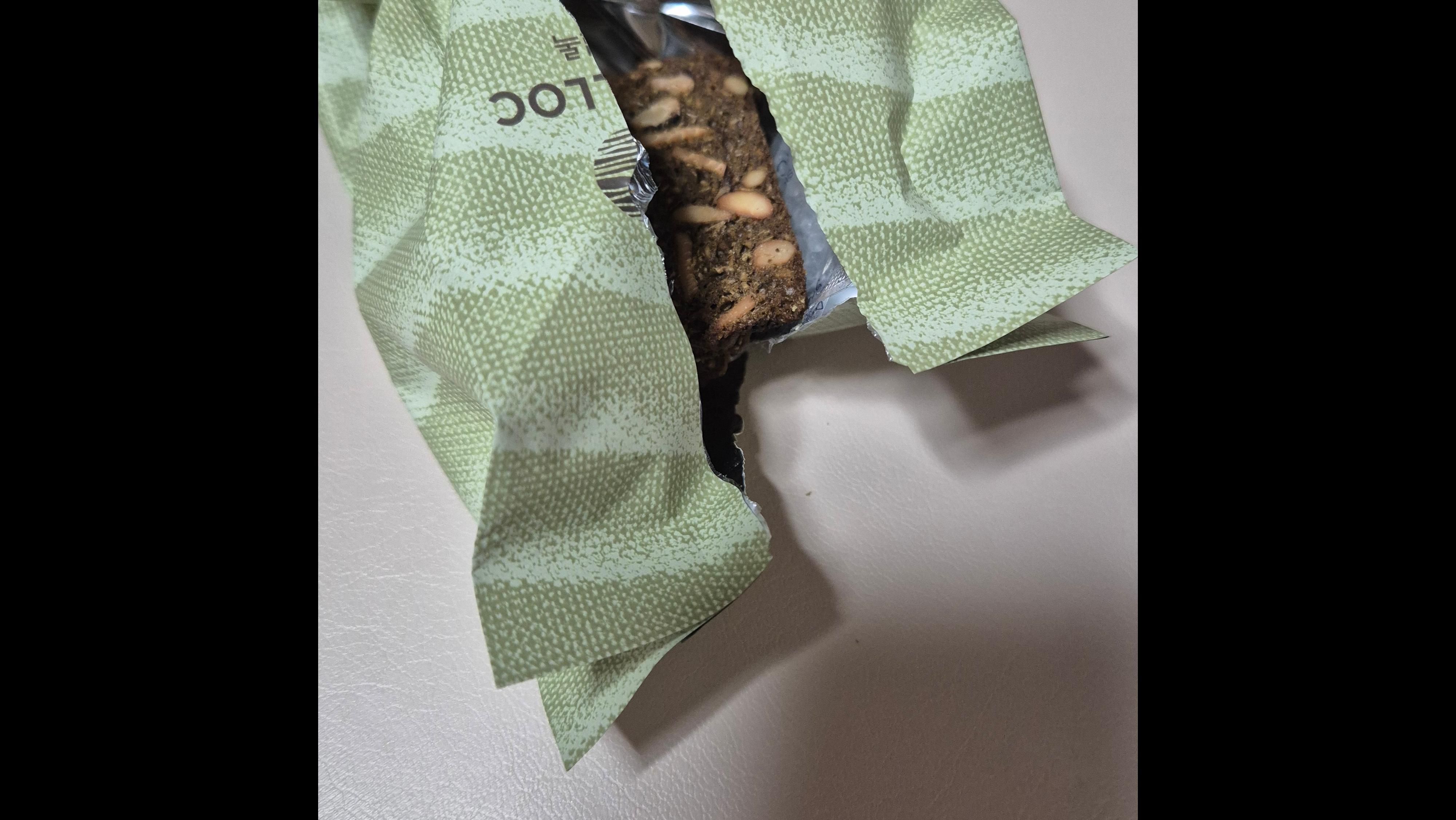 | 원재료명 및 함량 | 우유(원유 100%,국산),우리밀통밀 (밀:국산),비정제유기농사탕수수 11.6%,코코넛분말(필리핀산),아몬드,호두분태,해바라기씨앗,캐슈넛,유기농아가베시럽 2.6%,유기농 말차가루 1.8%(녹차:국산),혼합제제1(덱스트린,홍화황색소,L-아스코브산나트륨,치자청색소,비타민C,폴리인산나트륨),혼합제제2(탄산수소나트륨,옥수수전분),식염 / 밀, 우유, 호두 함유 | ||