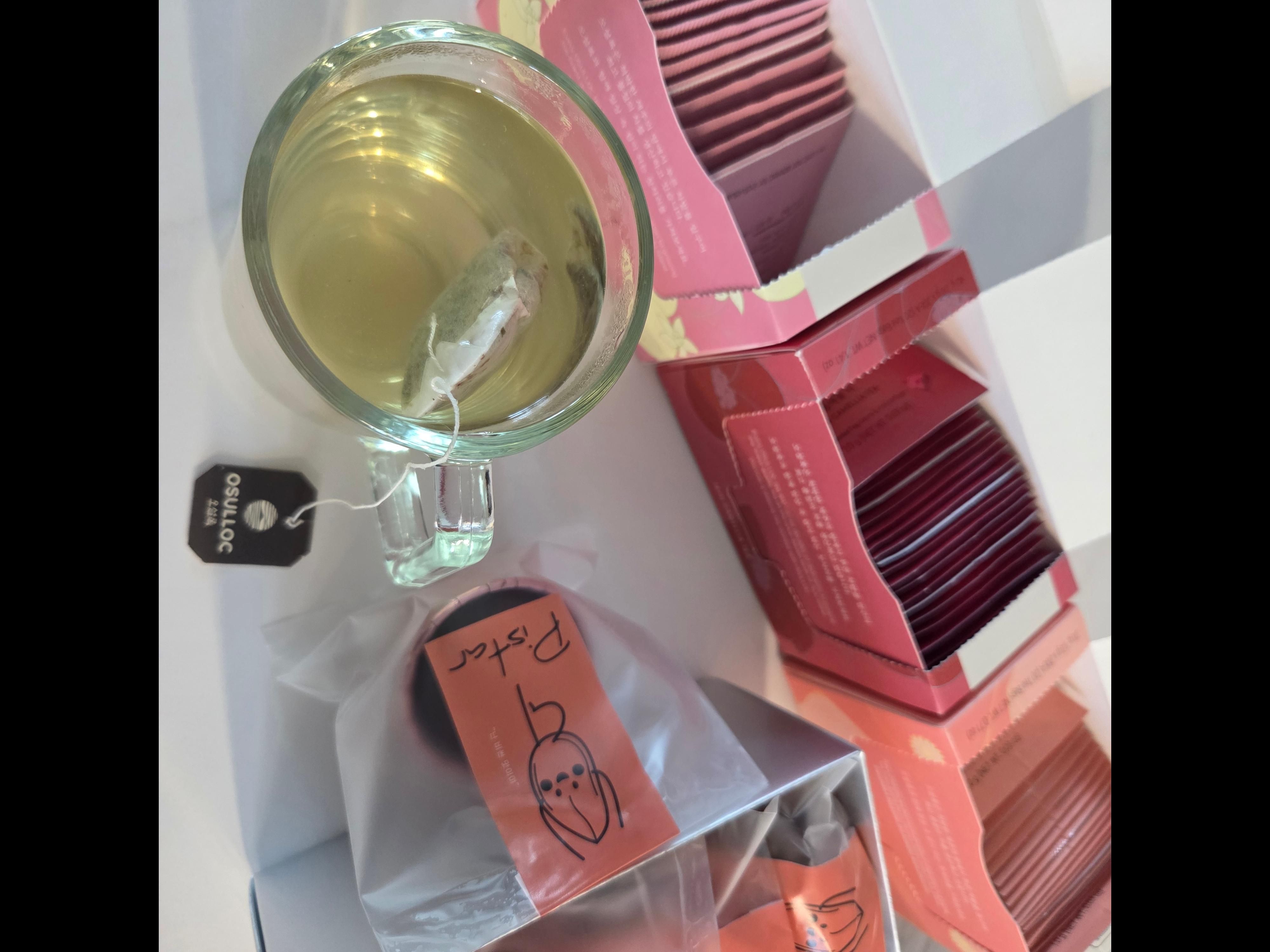 | 원재료명 및 함량 | 피치 캐모마일 : 캐모마일(크로아티아산), 레몬그라스(이집트산), 히비스커스(나이지리아산), 건조레몬, 향료, 기타가공품, 천연향료, 복숭아과즙분말(복숭아:국산) 제주 동백꽃 티 : 후발효차(제주산), 홍차(제주산), 설탕, 향료(동백꽃향), 후발효차열수추출물(제주산), 동백꽃(제주산) 베리 바닐라 그린티 : 녹차(제주산), 설탕, 시나몬(베트남산), 향료(딸기바닐라향), 딸기과즙분말(딸기과즙고 형분(딸기:국산)) |