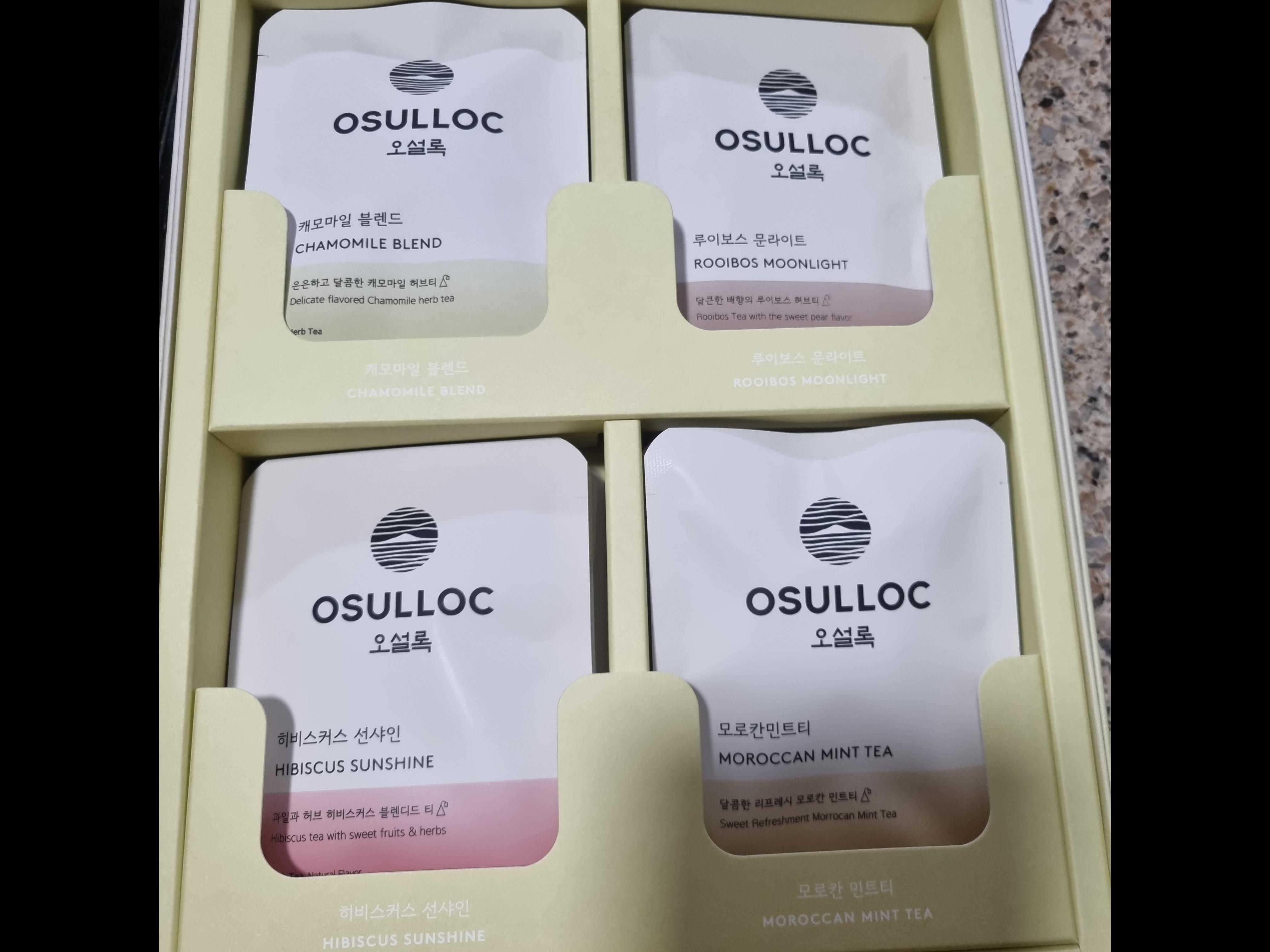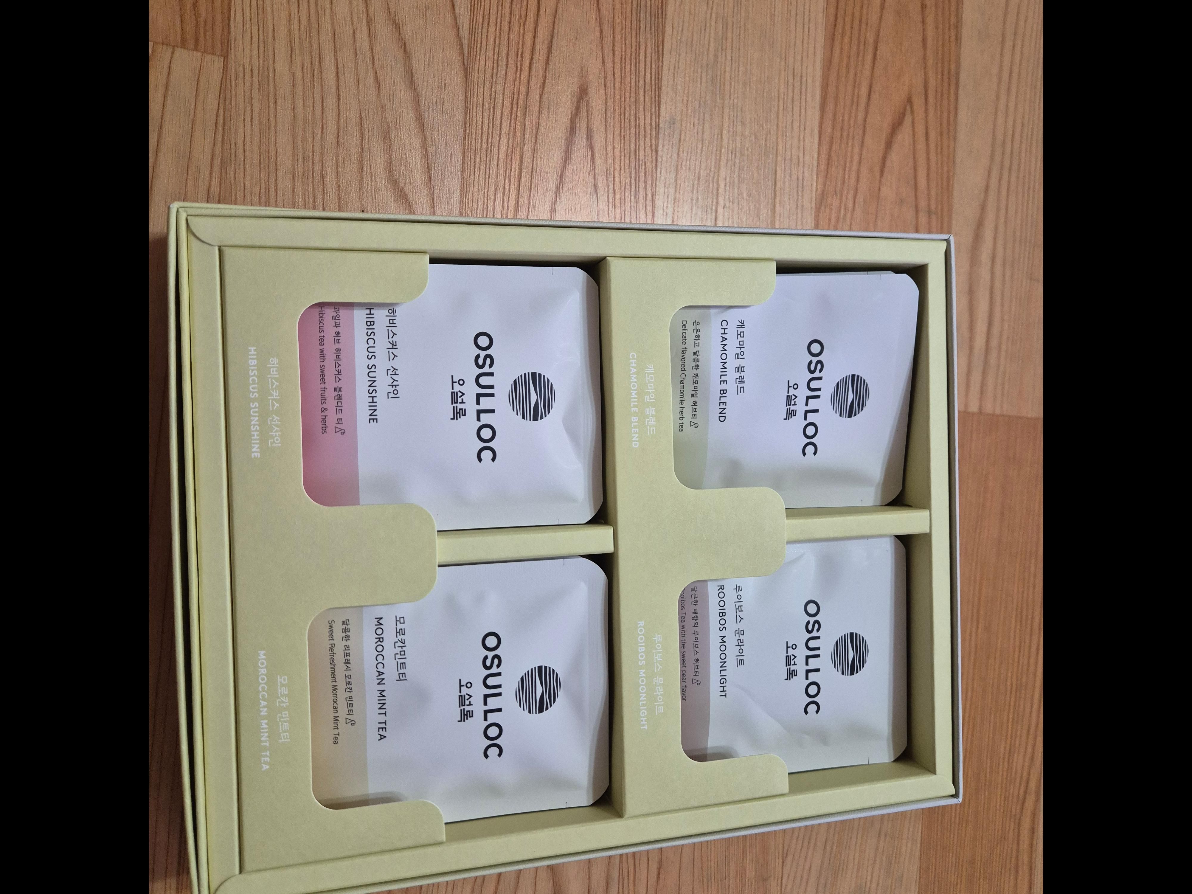 | 원재료명 및 함량 | •제품명 : 오설록 캐모마일 블렌드 •원재료명 : 캐모마일(이집트산),진피(국산),사과다이스(튀르키예산),레몬머틀,장미꽃잎 •제품명 : 오설록 히비스커스 선샤인 •원재료명 : 히비스커스(나이지리아산),파인애플다이스(파인애플,설탕,구연산)(태국산),로즈힙(칠레산),사과다이스,오렌지필,스피어민트,레몬머틀,천연향료(혼합과일향),장미꽃잎 •제품명 : 오설록 루이보스 문라이트 •원재료명 : 루이보스잎(남아프리카공화국산),배향향료제제(합성향료,주정,천연향료,젖산,프로필렌글리콜,정제수),스테비아잎(국산) •제품명 : 오설록 모로칸 민트티 •원재료명 : 페퍼민트(폴란드산),스피어민트(미국산),스테비아(국산) |