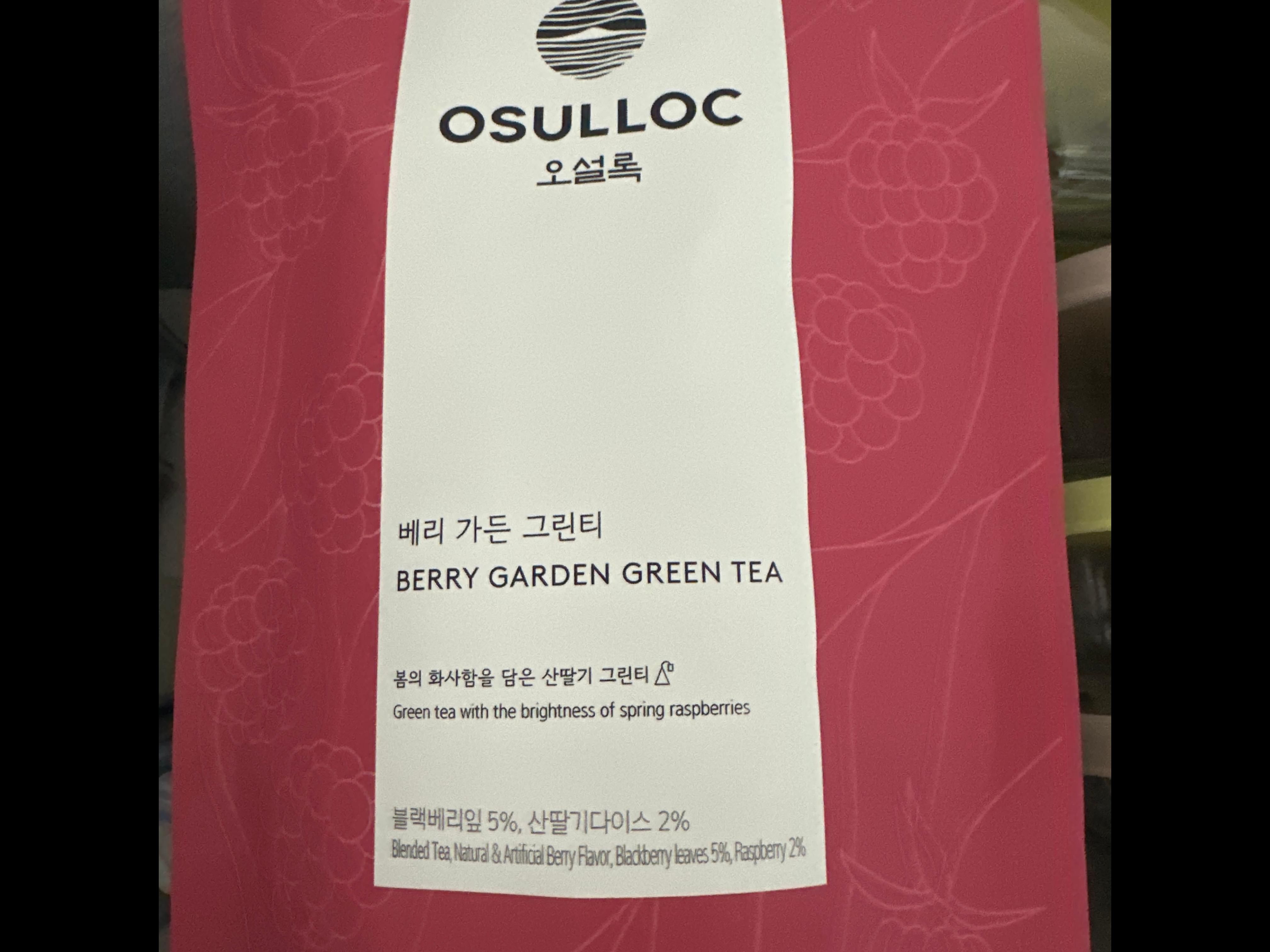 | 원재료명 및 함량 | 녹차(제주산), 건조사과(튀르키예산), 레몬밤(불가리아산), 시나몬, 향료, 블랙베리잎(알바니아산), 산딸기다이스(산딸기:국산) | ||