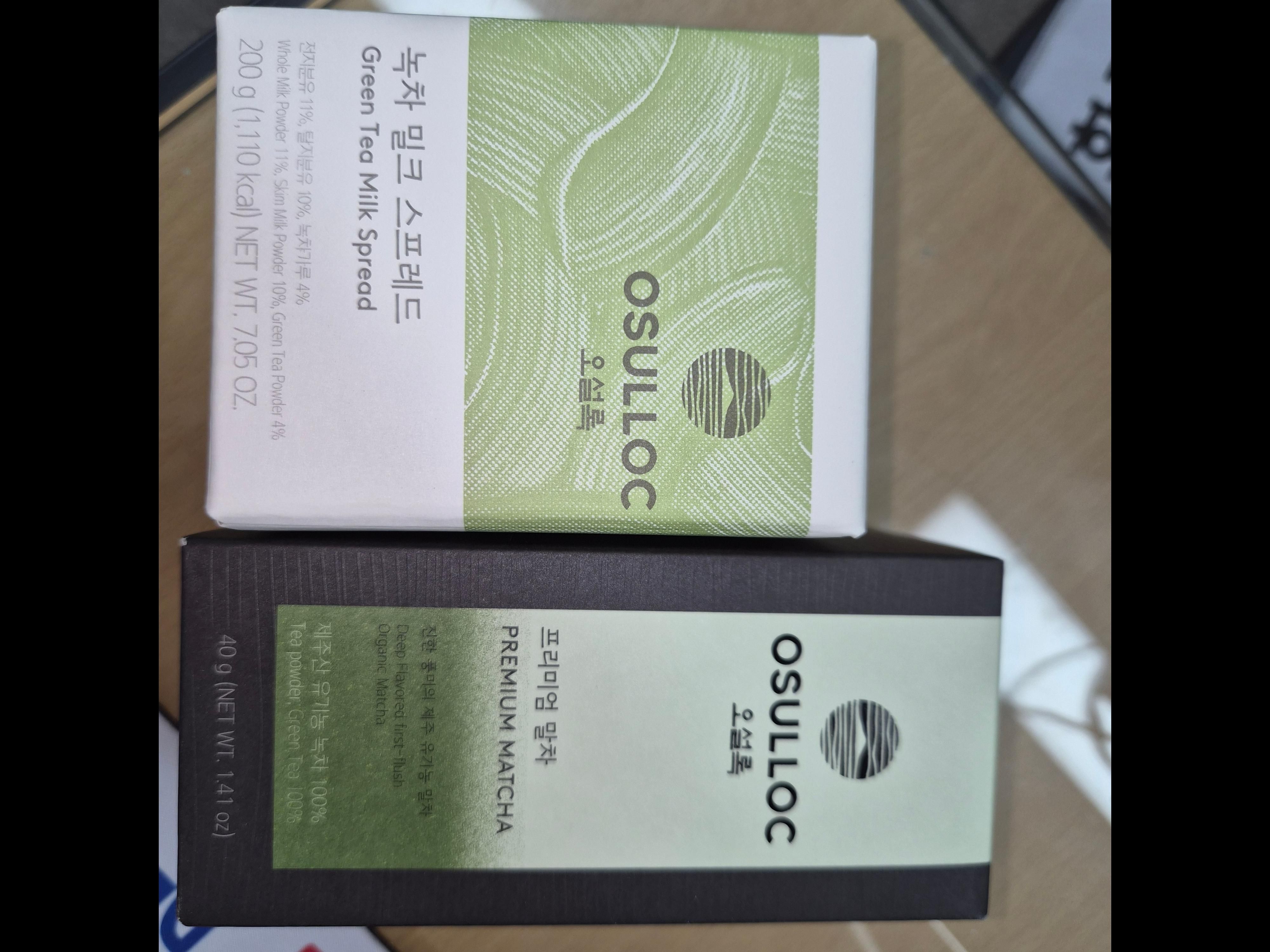 | 소비자안전을 위한 주의사항 | 오설록 프리미엄 말차 40g : 본 제품은 우유, 대두, 밀, 복숭아를 사용한 제품과 같은 제조시설에서 제조하고 있습니다. 녹차밀크스프레드 200 g : 본 제품은 밀, 계란, 땅콩, 소고기, 복숭아를 사용한 제품과 같은 제조시설에서 제조하고 있습니다. |