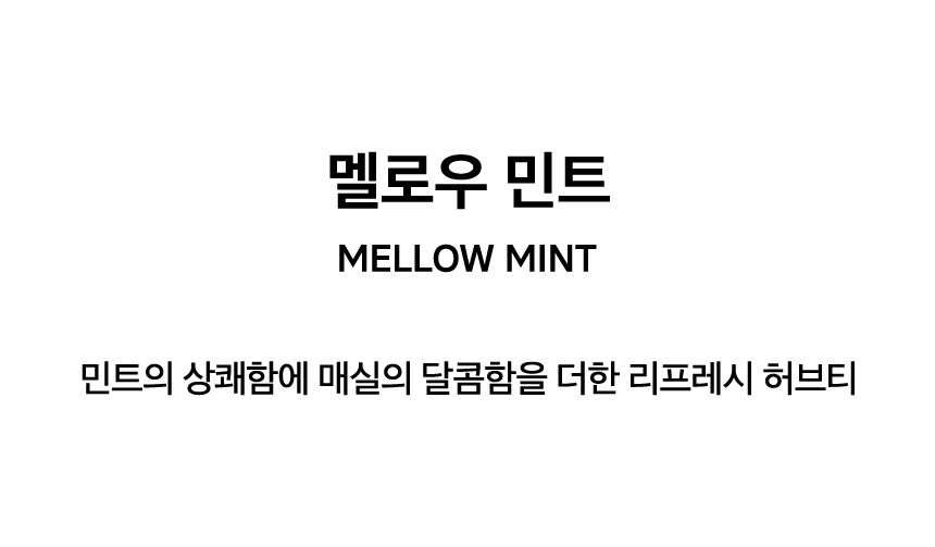 멜로우 민트는 가로 69mm, 세로 80mm, 높이 122mm의 종이 박스로 포장되어 있습니다.