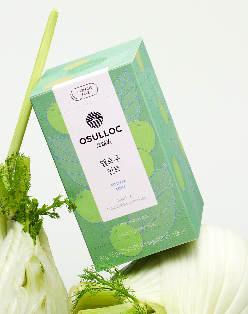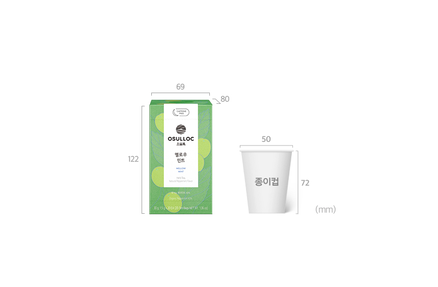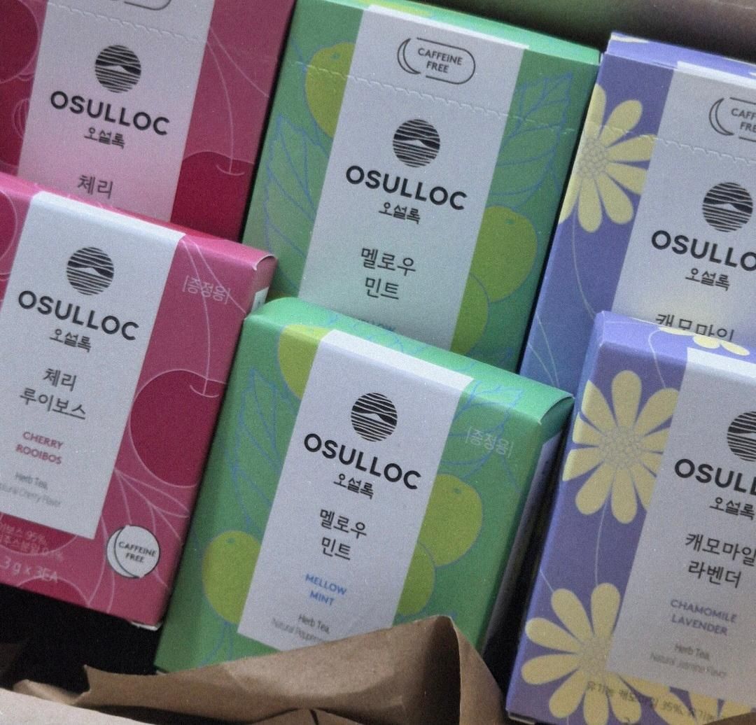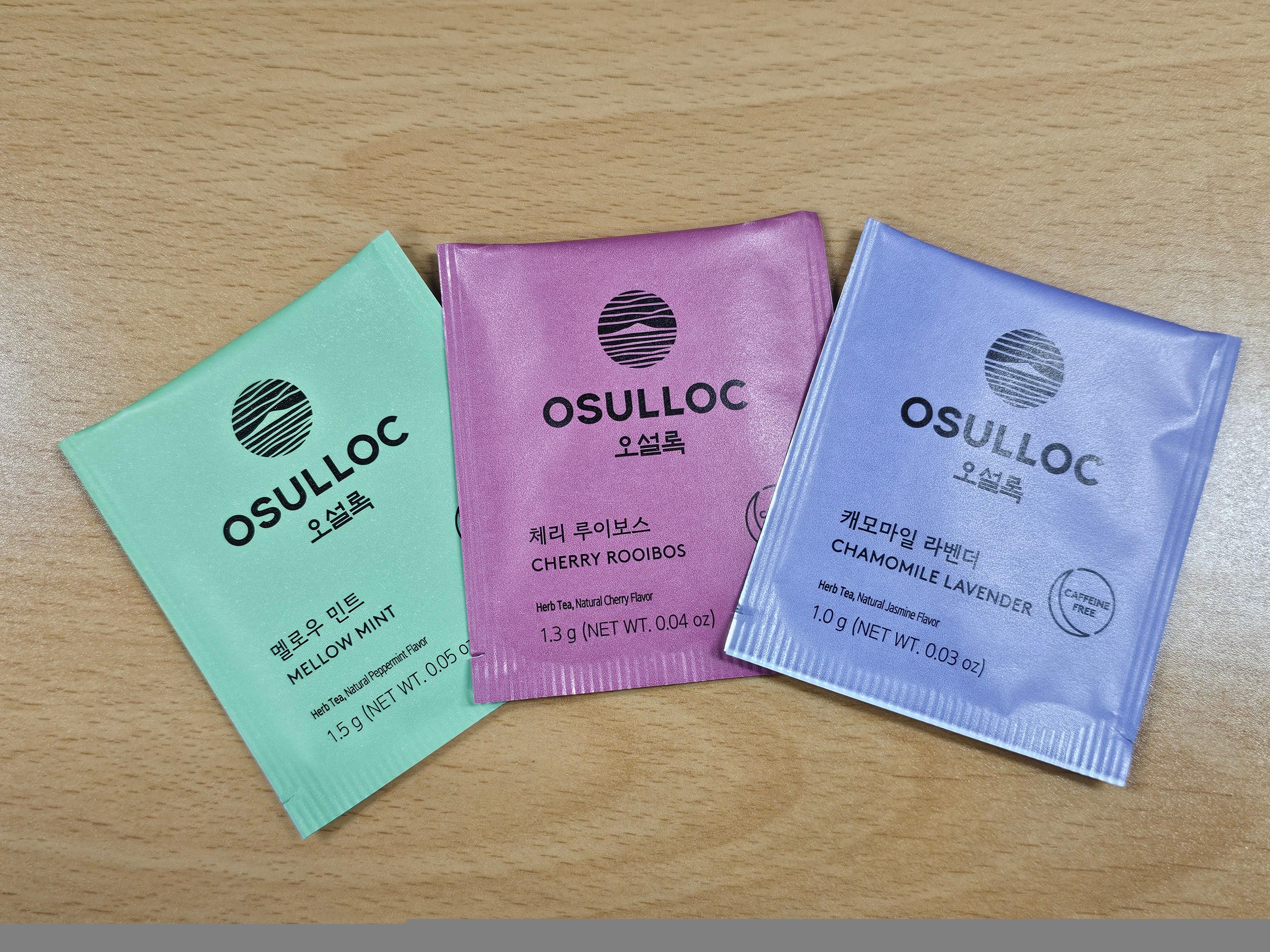 | 포장단위별 내용물의 용량(중량), 수량 | 오설록 캐모마일 라벤더 : 20g(1.0gX20입) 오설록 멜로우 민트 : 30g(1.5gX20입) 오설록 체리 루이보스 : 26g(1.3gX20입) |