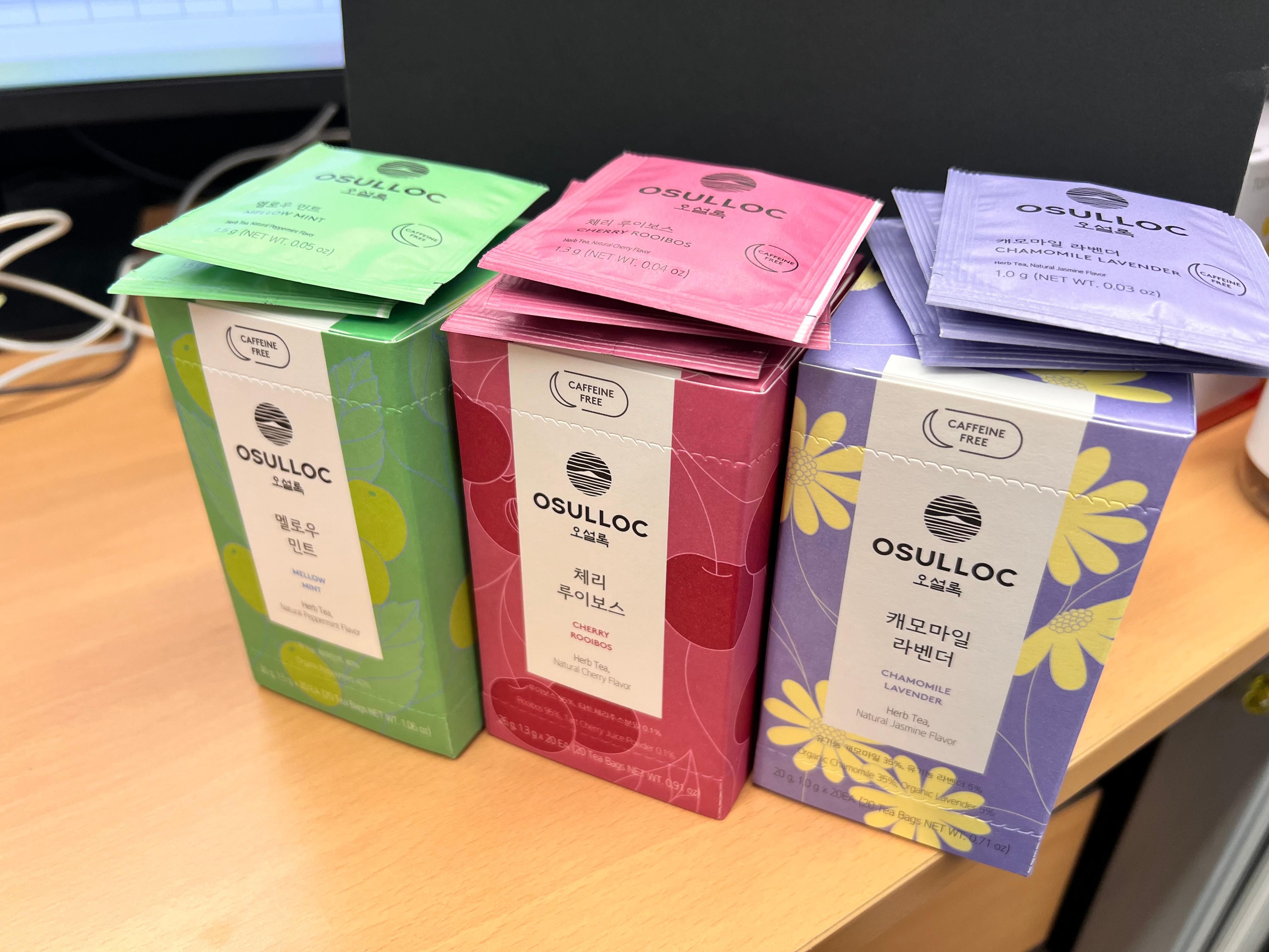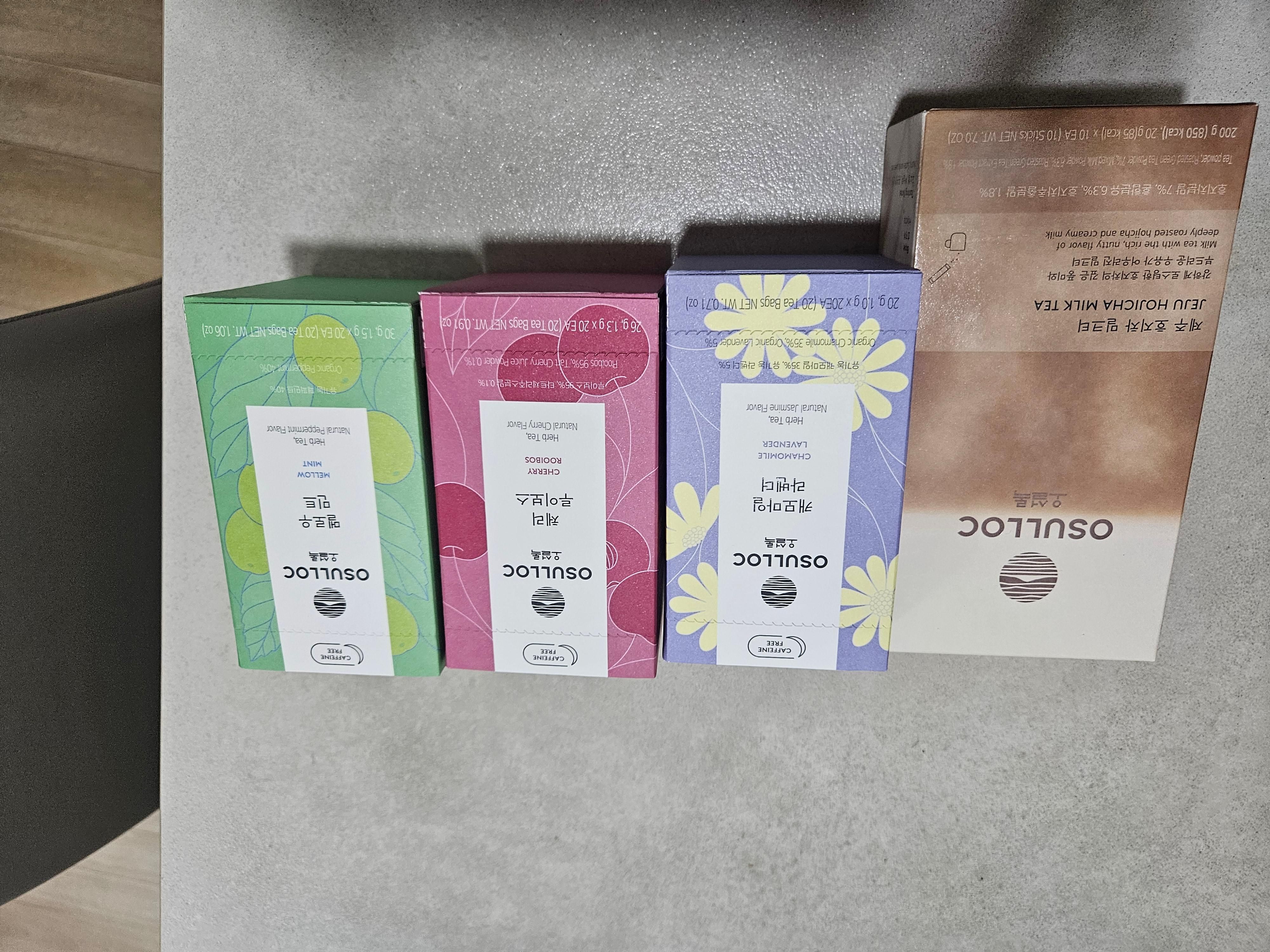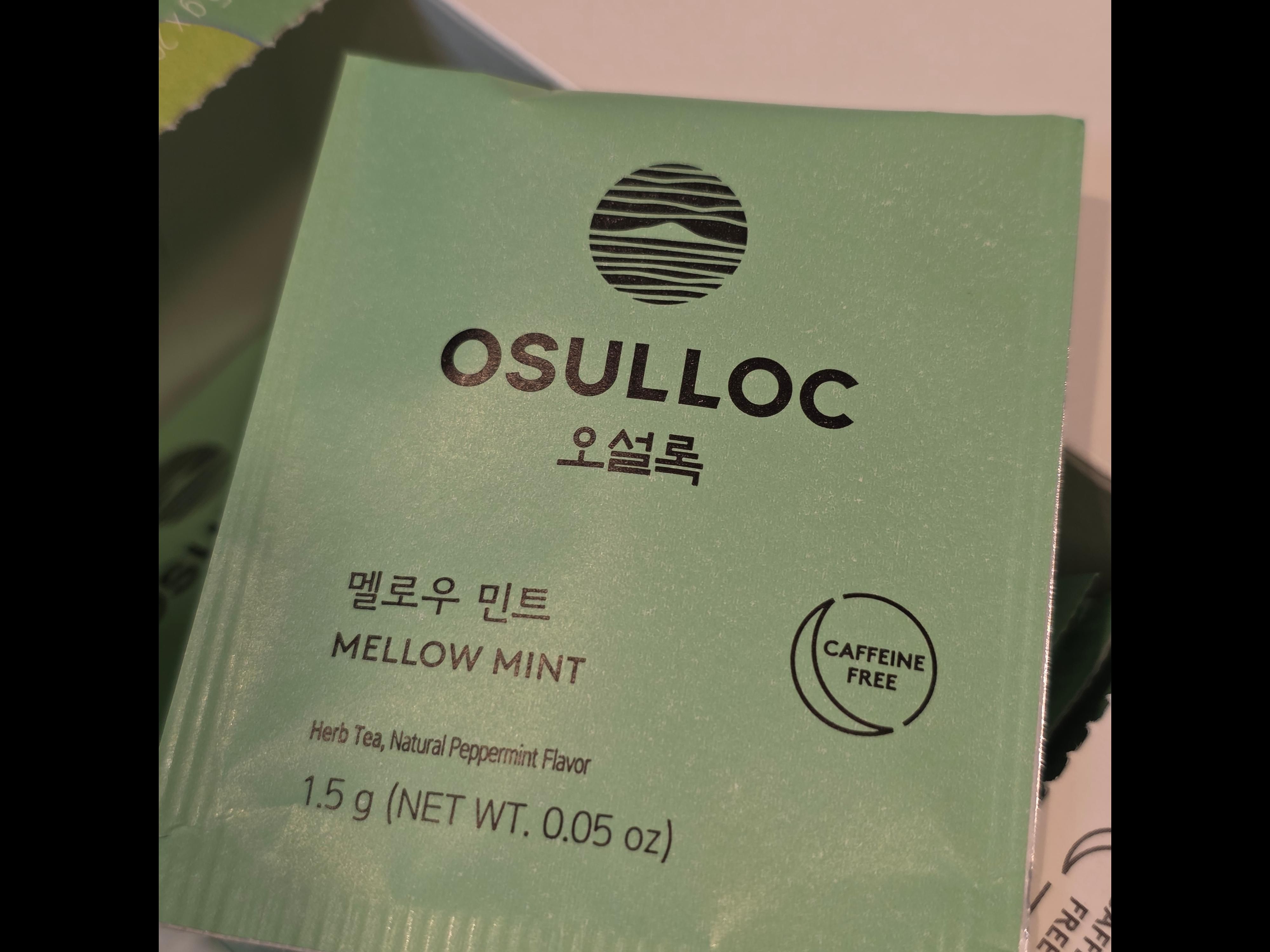 | 포장단위별 내용물의 용량(중량), 수량 | 오설록 캐모마일 라벤더 : 20g(1.0gX20입) 오설록 멜로우 민트 : 30g(1.5gX20입) 오설록 체리 루이보스 : 26g(1.3gX20입) |