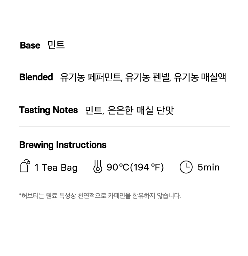 민트의 상쾌함에 매실의 달콤함을 더한 리프레시 허브티