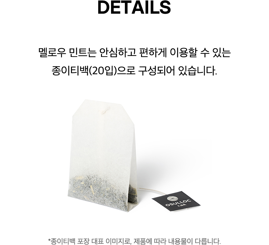 멜로우 민트는 안심하고 편하게 이용할 수 있는 종이티백(20입)으로 구성되어 있습니다.