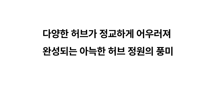- 다양한 허브가 정교하게 어우러져 완성되는 아늑한 허브 정원의 풍미