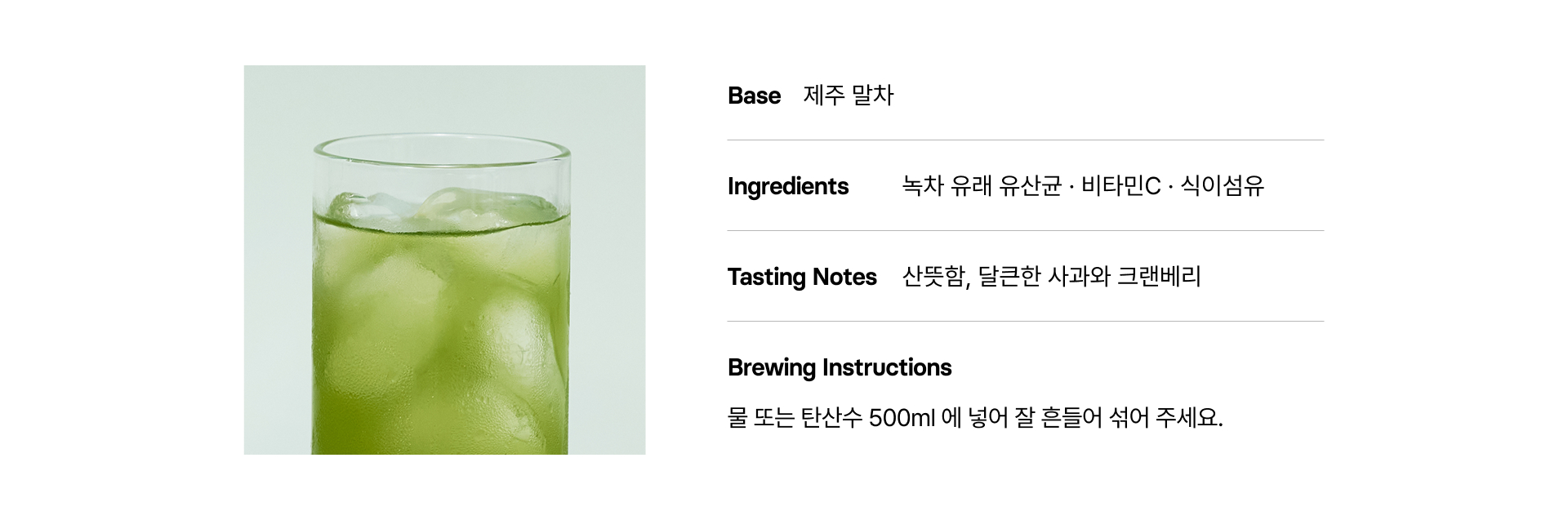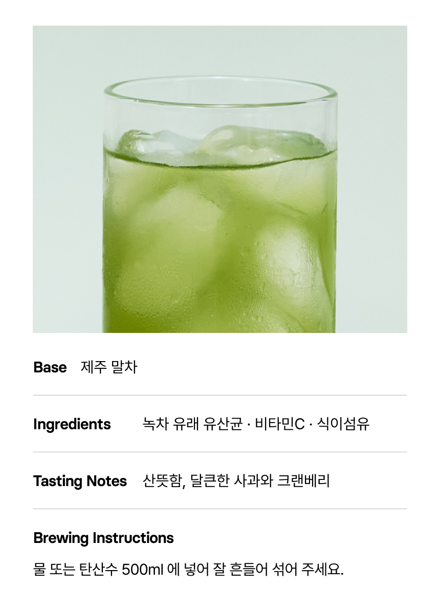 말차에 산뜻한 사과와 크랜베리 천연 과일향을 더해 부담없이 즐기기 좋은 웰니스 말차