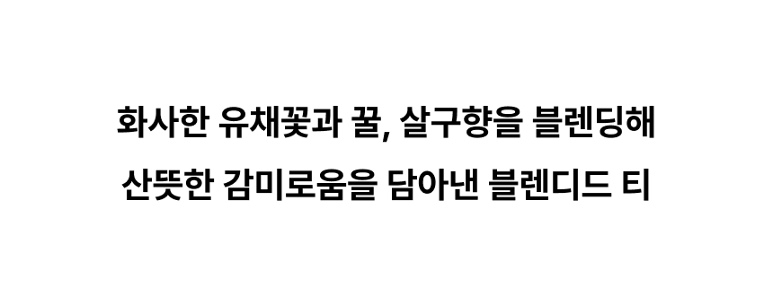 화사한 유채꽃과 꿀, 살구향을 블렌딩해 산뜻한 감미로움을 담아낸 블렌디드 티