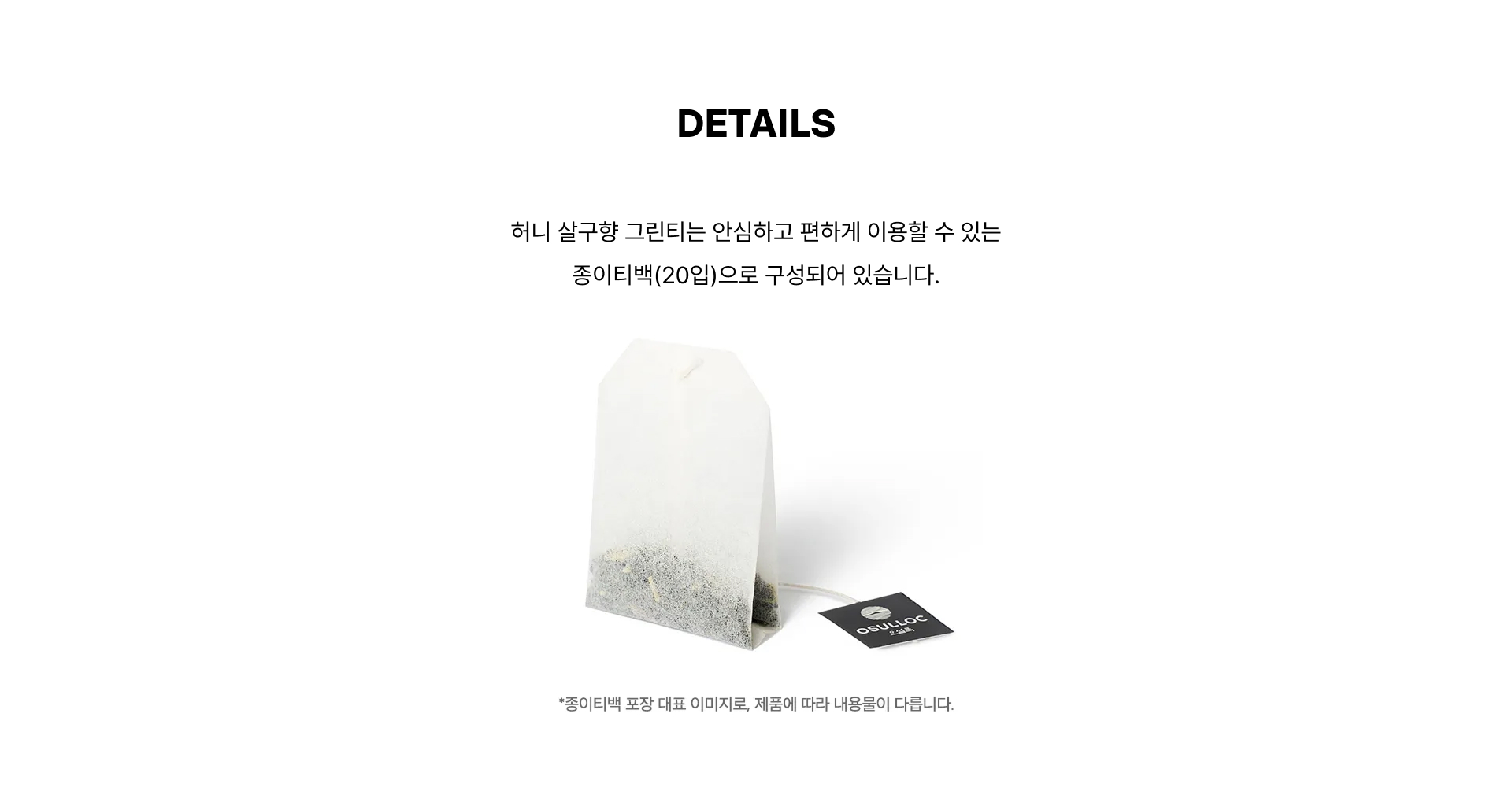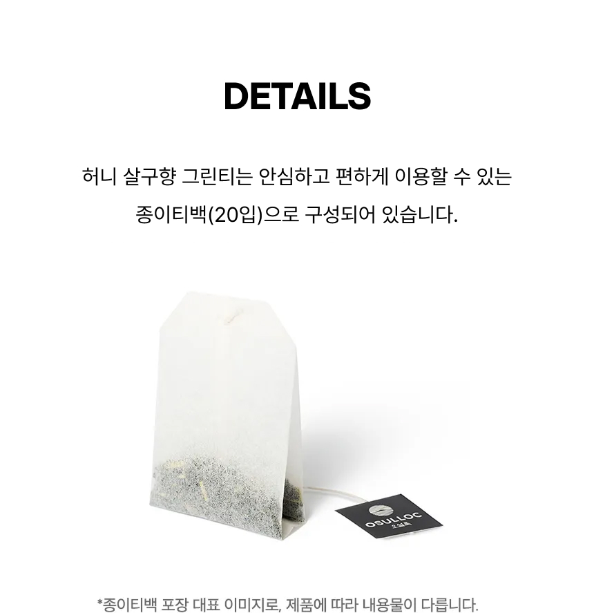 허니 살구향 그린티는 안심하고 편하게 이용할 수 있는 종이티백(20입)으로 구성되어 있습니다.