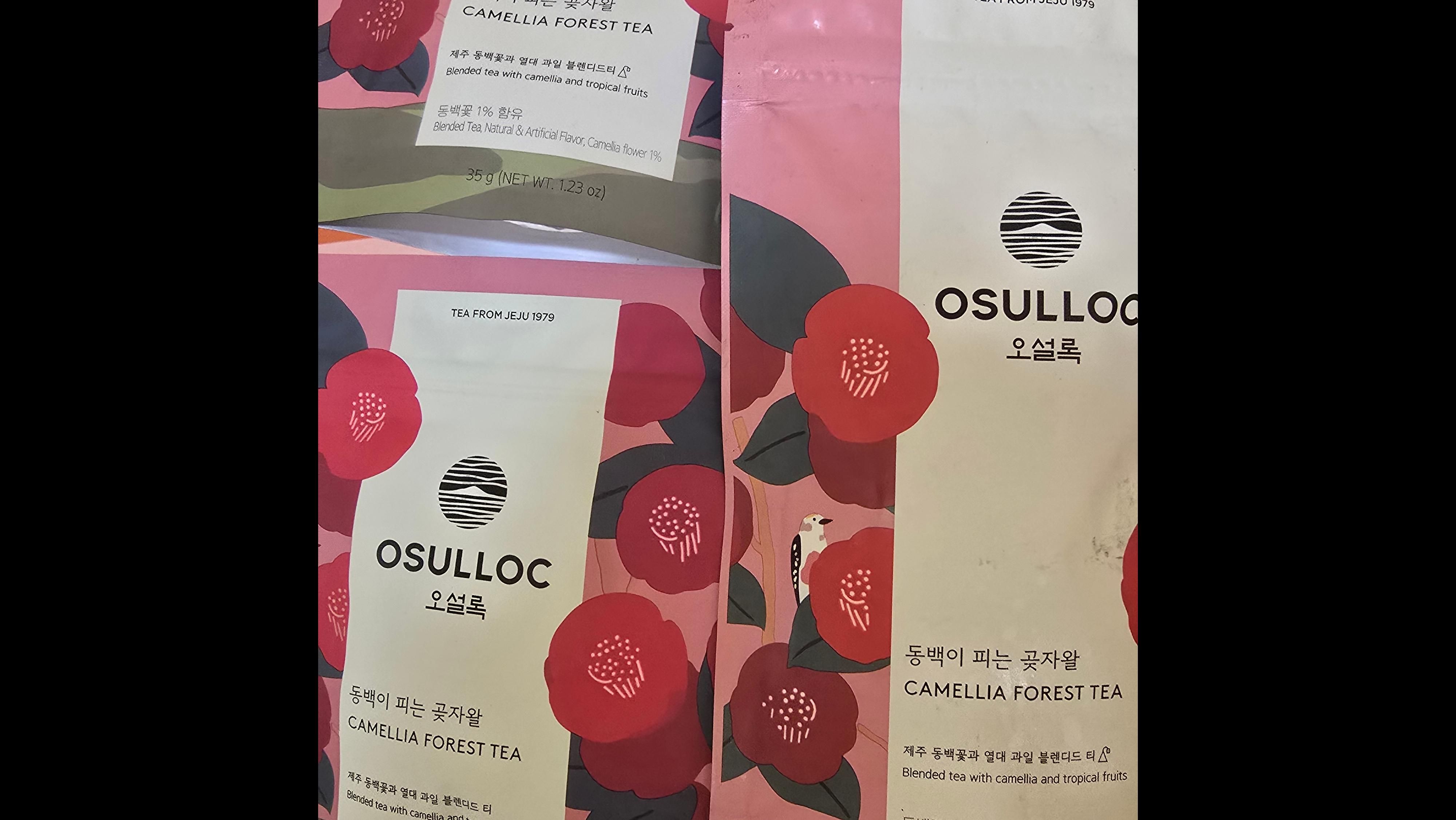| 원재료명 및 함량 | 동백이 피는 곶자왈: 홍차(제주산), 후발효차(제주산), 캔디류(별사탕), 파인애플다이스(파인애플,설탕,구연산)(태국산), 향료(동백꽃향), 동백꽃(제주산)
