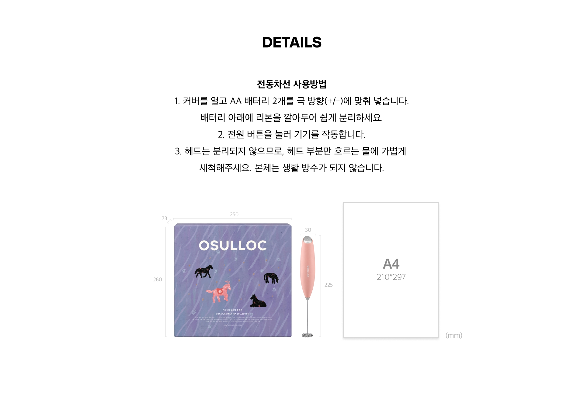 | 소비자안전을 위한 주의사항 | 차류 : 본 제품은 메밀, 땅콩, 대두, 밀, 복숭아를 사용한 제품과 같은 제조시설에서 제조하고 있습니다. 전동 차선 : [취급 시 주의사항] 1. 사용 중에는 블렌딩 주위를 손으로 만지지 마세요. 2. 전동 차선을 식기세척기에 넣지 마세요. 3. 전동 차선은 끈적거리거나 딱딱한 식품에는 사용하지 마세요. 4. 가연성 가스나 전기스토브, 히터 근처에 장치를 절대로 두지 마십시오. 5. 회전하는 동안 회전하는 날이 컵 바닥에 닿지 않게 주의해 주세요. 고장의 원인이 됩니다. 6. 전동 차선은 방수가 아닙니다. 7. 2분 이상 계속해서 사용하지 마세요. 발열이 생기면 충분히 열을 식힌 후에 사용해 주세요.8. 소비자의 부주의로 훼손된 제품은 보상의책임을 지지 않습니다. |